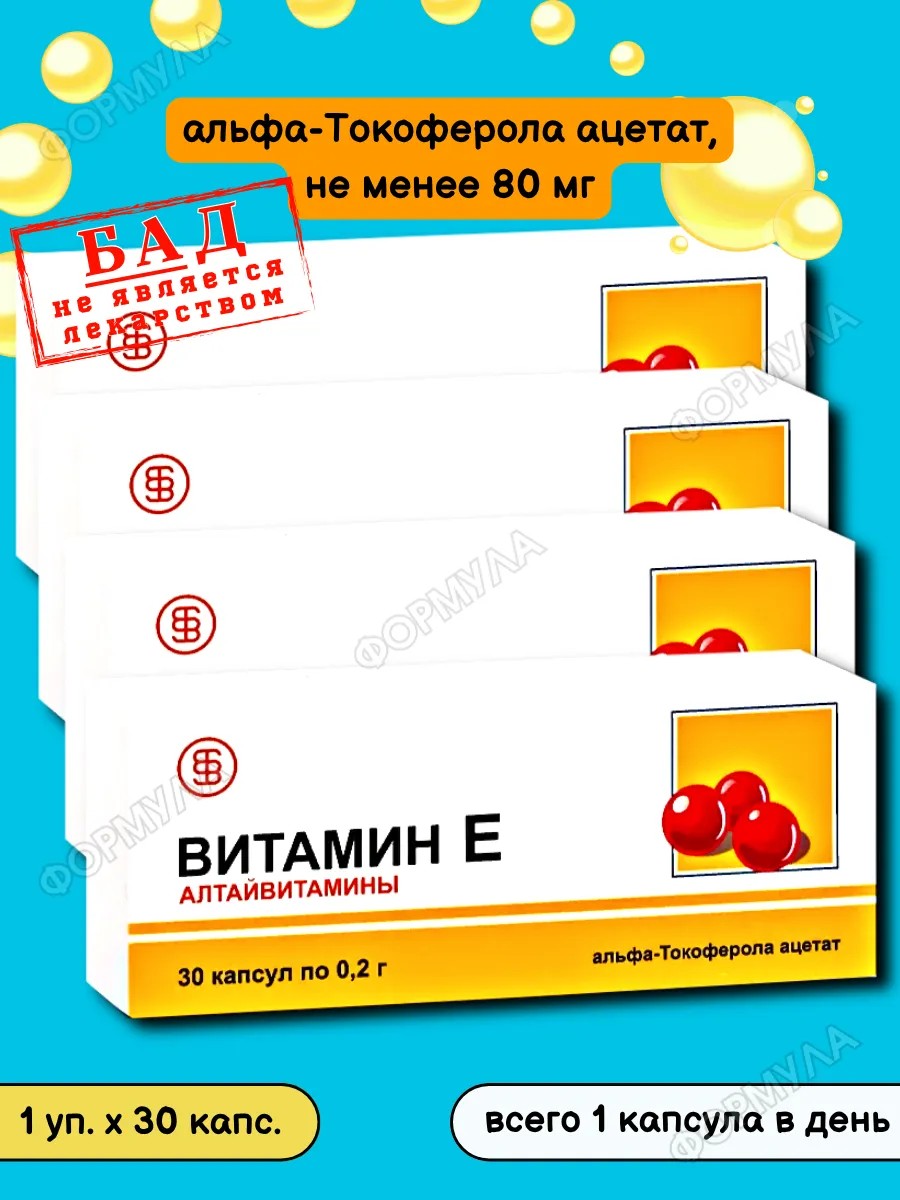| Комплектация | витамин е алтайвитамины n30 капс по 0,2г*4шт |