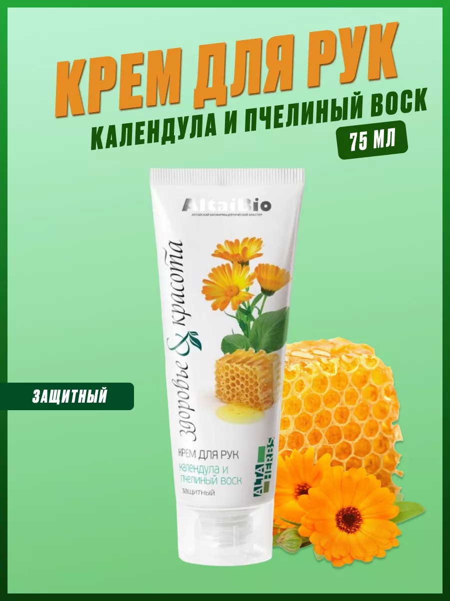 AltaiBio Крем для рук защитный календула и пчелиный воск, 75 мл