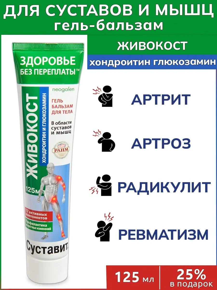 Package contentsSustavit Zhivokost (chondroitin glucosamine) cream gel balm for the body 125 ml