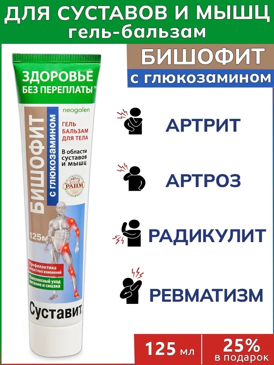 КомплектацияСуставит Бишофит (глюкозамин) крем гель бальзам для тела 125мл