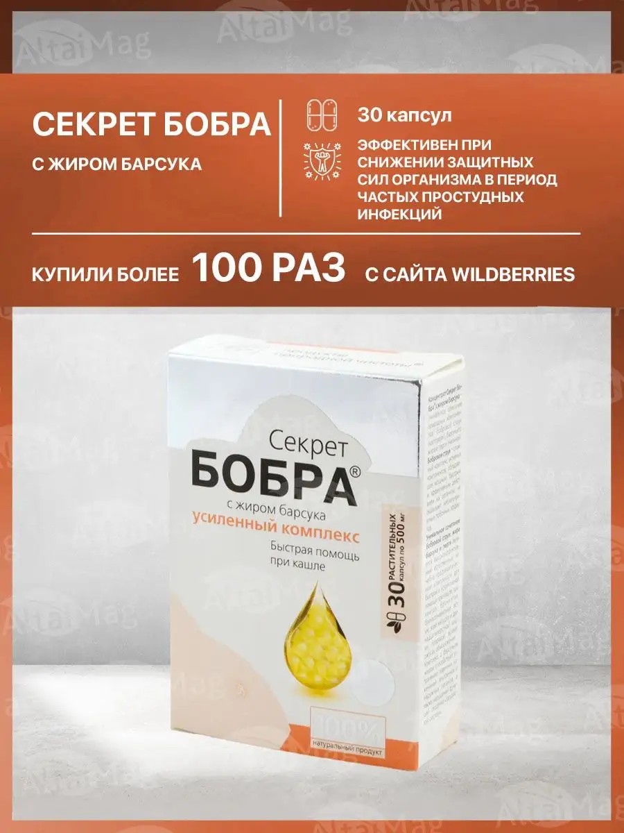 Altaimag Секрет бобра с жиром барсука при кашле, 30 капсул