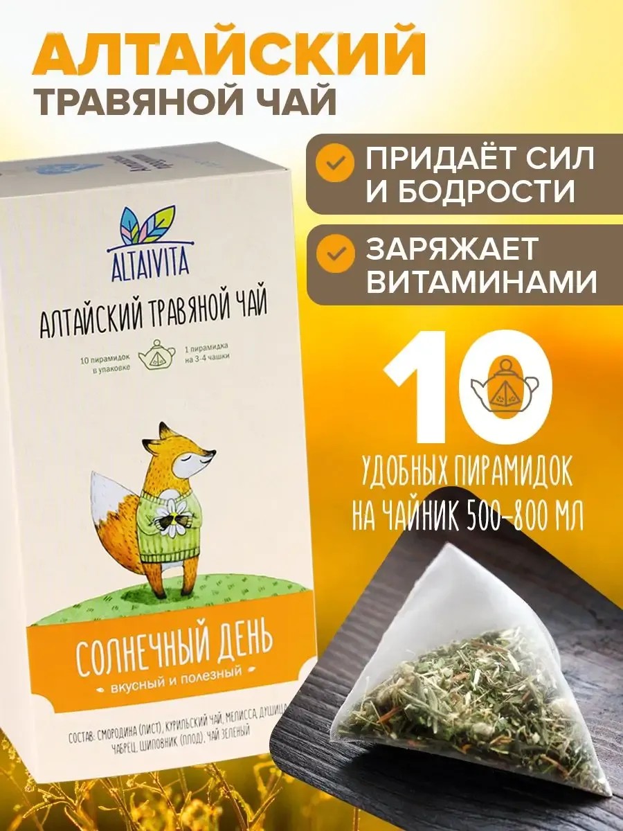 ALTAIVITA Травяной чай в пирамидках Солнечный день, 40 гр 10 пирамидок