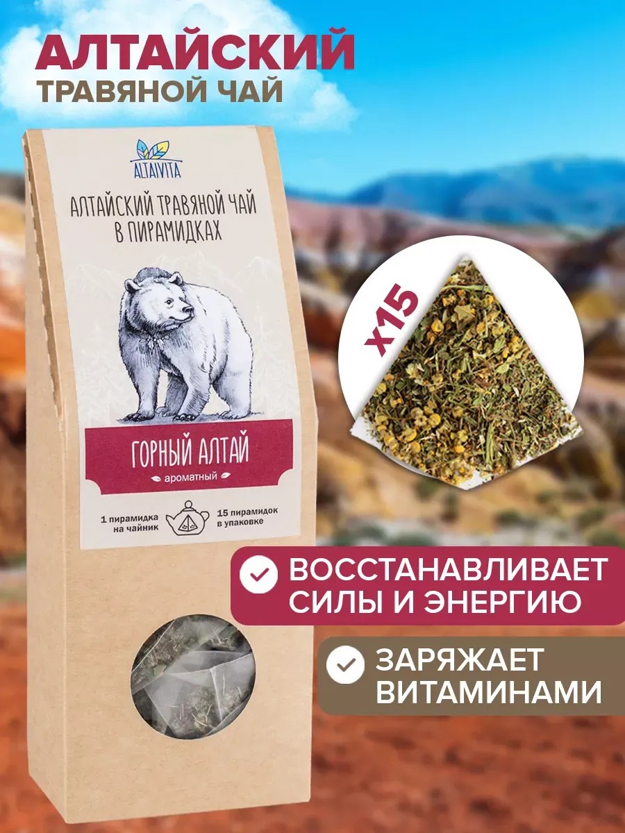 Вкус чая переместит вас в сердце Горного Алтая, а входящие в его состав компоненты помогут восстановить силы, придать энергии и улучшить настроение. Травы, которые вошли в состав чая, собраны в одном из самых экологически чистых регионов России - на Алтае, и помимо неповторимого вкуса и аромата, обладают следующими полезными свойствами: помогают бороться с авитаминозом, укрепить иммунитет в период простуд, восстановить организм после болезни, придать бодрости после длительного переутомления, нормализовать уровень холестерина, вывести лишнюю жидкость, нормализовать работу мозга, понизить артериальное давление, облегчить головные боли и мигрени, укрепить стенки сосудов.