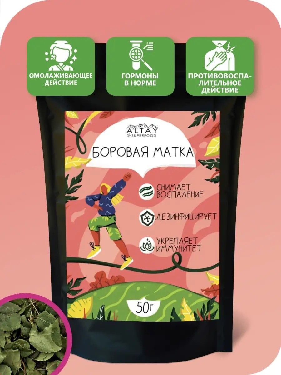 Алтайские травы всегда ценились полезными свойствами. Боровая матка - это трава для женщин, ларец алтая. Сушеная трава имеет множество полезных и лечебных веществ, которые помогают при целом ряде болезней. Растение имеет фитогормоны, которые успокаивают нервную систему при менструации. Трава для женщин регулирует прогестерон в женском организме, благодаря чему женщина быстрее забеременеет. Восстанавливается гормональный фон, тем самым лечит от бесплодия. Женский сбор снижает проявления аллергии и излечивает ее, повышает иммунитет и положительно действуют на мозг - повышается умственная деятельность, улучшается память. Боровая матка улучшает работу репродуктивной системы, лечит эндометриоз, смягчает климакс у женщин и климакс приливы. Природное лекарство хорошо для снятия неприятных симптомов, связанных с желудочно-кишечным трактом и циститом. Облегчения менопаузы.