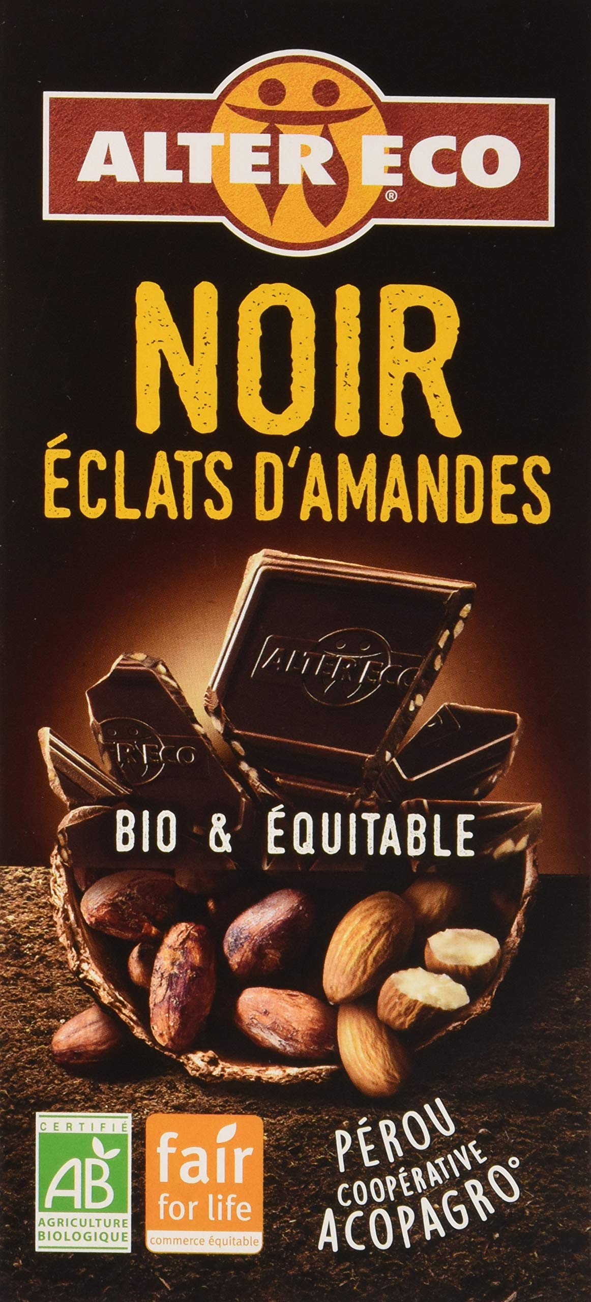 Discover Alter Eco's 60 cocoa dark chocolate with almond flakes and let itself be carried away by its fruity notes. Organic and fair trade, it's the ideal chocolate bar for more responsible consumption from breakfast to afternoon tea.10 mm. In case of improper storage, a white film may appear on the surface of the product. This natural phenomenon has no impact on the consumer's health. 193 mm. The 100g tablet. Découvrez le chocolat noir éclats d'amandes à 60 de cacao Alter Eco et laissez-vous emporter par ses notes fruitées. Bio et issue du commerce équitable, c'est la tablette de chocolat idéale pour consommer plus responsable du petit déjeuner au goûter.10 mm. En cas de stockage inadapté, un voile bla peut apparaître à la surface du produit. Ce phénomène naturel n'a aucun impact sur la santé du consommateur. 193 mm. La tablette de 100g.
