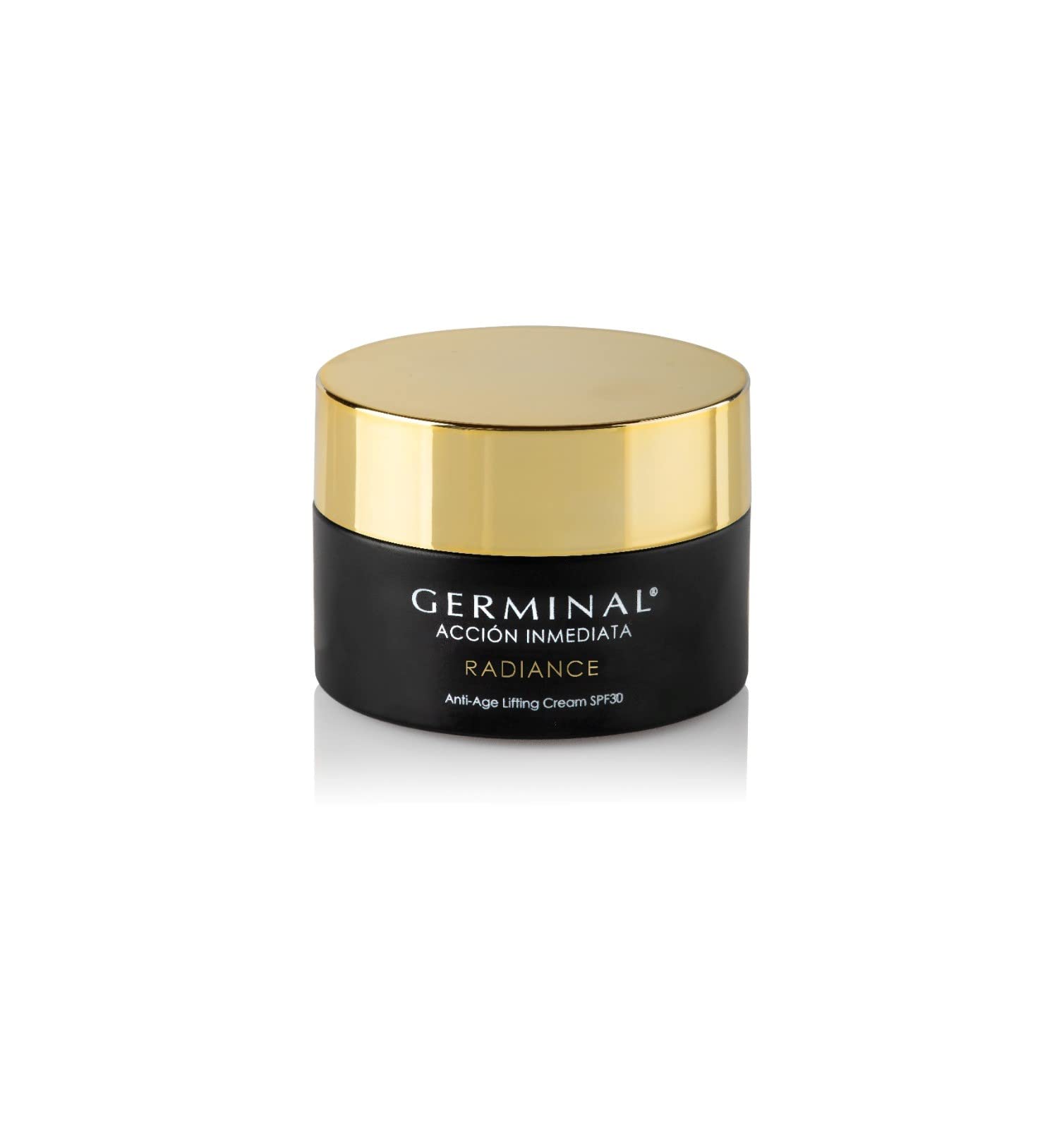 The GERMINAL Radiance moisturizing cream with sun protection has been dermatologically tested for all skin types from 35 years. Particularly suitable for consumers who are concerned about premature skin aging and are looking for a product that provides clarity, a good face in everyday life and protection against the sun's rays. The GERMINAL Action Radiance day cream is the only anti-aging cream with a double glitter effect, which tightens and immediately brightens up every day. SPF 30 and light texture, which makes absorption fast and pleasant to use. Just like our instant flash ampoules, you get a lifting effect for more than 8 hours. Thanks to protection factor 30, the skin, in addition to other active radiation agents, protects against the harmful effects of the sun and impurities and prevents premature skin aging. INSTRUCTIONS FOR USE none SAFETY WARNING For external use only. See moreInstantly firms and radiates every day - for best results, apply the serum to the cleansed face according to the skin's needs and then immediately apply radiance to the face, neck and décolleté dermatologically tested 50 ml. Light texture: makes washing dishes fast, makes use comfortable and pleasant. Without odor. Suitable for all skin types from 35 years: the formula of this cream with hyaluronic acid, wheat proteins, witch hazel extract and yeast extract has been specially developed for mature skin that wants a good face every day. Sun protection SPF 30 and protective shield: in addition to its powerful facial moisture, it protects the skin against the harmful effects of the sun and harmful substances and prevents premature skin aging. Takes care of your skin: this daily facial cream provides immediate brightness, moisture and protection. It is the only anti-aging cream with double GERMINAL Flash effect, which produces an immediate lifting effect for more than 8 hours.Germinal Acción Inmediata Radiance Anti-age Lifting Cream Spf30 50 Ml Mujer De GERMINAL Radiance vochtinbrengende crème met zonwering is dermatologisch getest voor alle huidtypes vanaf 35 jaar. Bijzonder geschikt voor consumenten die zich zorgen maken over vroegtijdige huidveroudering en op zoek zijn naar een product dat zorgt voor helderheid, een goed gezicht in het dagelijks leven en bescherming tegen zonnestralen. De GERMINAL Action Radiance dagcrème is de enige anti-aging crème met dubbel glittereffect, dat strakker en elke dag direct opfleurt. SPF 30 en lichte textuur, die de absorptie snel maakt en het gebruik aangenaam maakt. Net als onze direct flitsampullen krijg je een lifting-effect voor meer dan 8 uur. Dankzij beschermingsfactor 30 beschermt de huid naast andere actieve stralingsmiddelen tegen de schadelijke effecten van de zon en onzuiverheden en voorkomt vroegtijdige huidveroudering. GEBRUIKSAANWIJZING geen VEILIGHEIDSWAARSCHUWING Alleen voor uitwendig gebruik. Meer bekijkenVerstevigt elke dag onmiddellijk en stralend – voor het beste resultaat met het gereinigde gezicht het serum overeenkomstig de behoeften van de huid aanbrengen en vervolgens onmiddellijk radiance op gezicht, hals en decolleté aanbrengen dermatologisch getest 50 ml. Lichte textuur: maakt het afwassen snel, maakt het gebruik comfortabel en aangenaam. Zonder geur. Geschikt voor alle huidtypes vanaf 35 jaar: de formule van deze crème met hyaluronzuur, tarweproteïnen, toverhazelaarextract en gistextract is speciaal ontwikkeld voor de rijpe huid die dagelijks een goed gezicht wil hebben. Zonwering SPF 30 en beschermend schild: naast zijn krachtige gezichtsvochtigheid beschermt het de huid tegen de schadelijke effecten van de zon en schadelijke stoffen en voorkomt vroegtijdige huidveroudering. Verzorgt je huid: deze dagelijkse gezichtscrème geeft onmiddellijke helderheid, vocht en bescherming. Het is de enige anti-aging crème met dubbel GERMINAL Flash-effect, die een direct lifting-effect voor meer dan 8 uur produceert.