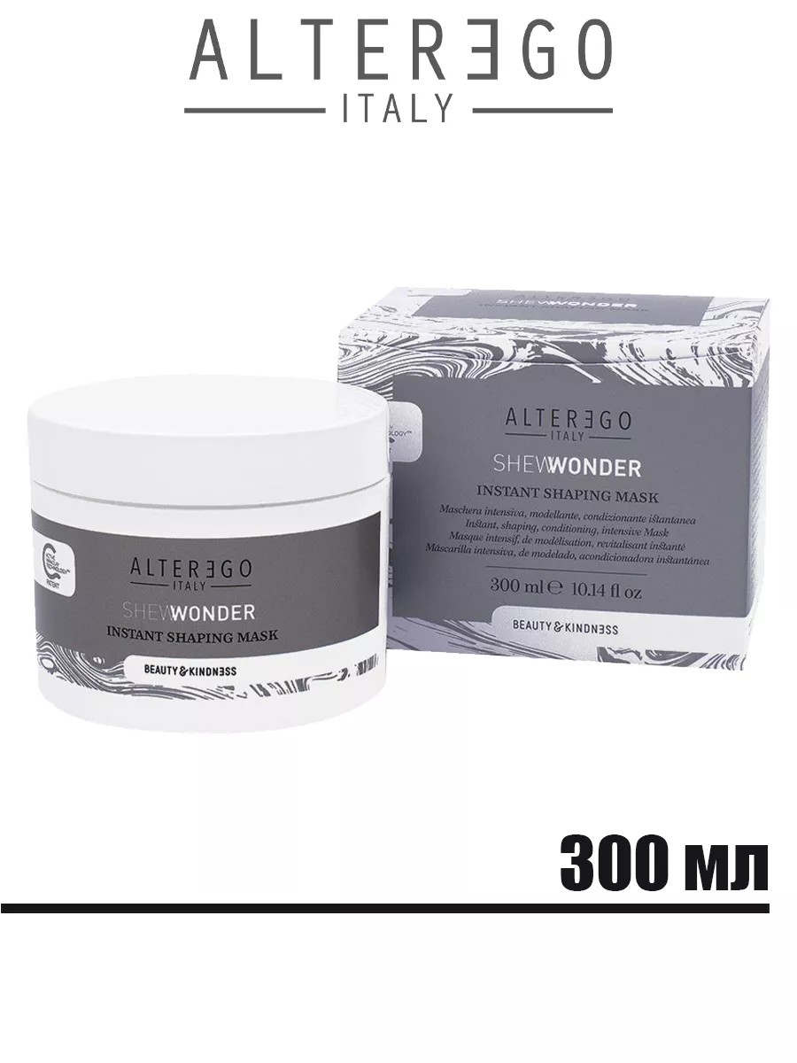 ALTER EGO Shewonder Instant Shaping Mask - A mask for unruly hair that protects, restores, and provides deep and instant hydration to the scalp and hair. It has a prolonged action. The formula is enriched with shea butter, clay, and a starch complex. It protects and restores, instantly hydrating the scalp and hair. The active ingredients in the mask make hair manageable, shiny, and silky. It has a memory effect. Suitable for medium-thickness hair, chemically treated hair, frizzy hair, and frizzy hair. Effect: Hair becomes manageable, shiny, and silky. The mask protects curls from environmental influences and moisturizes the scalp, preventing dryness, tightness, and dandruff. It restores hair along the entire length, sealing the ends and sealing the cuticles, acting as an antioxidant and repelling free radical attacks. Directions: Apply the mask to dry scalp, massage in, and leave on for a couple of minutes. Add a little water, massage until foam forms, and rinse. About the AlterEgo SHEWONDER line: This beauty ritual for disciplined, controlled, beautiful, and healthy hair is based on patented Active Miraclay Technology with volcanic clay and an oil complex. All Shewonder products are dermatologically TESTED. All formulas are formulated WITHOUT sulfates, silicones, paraffins, parabens, or artificial colors.