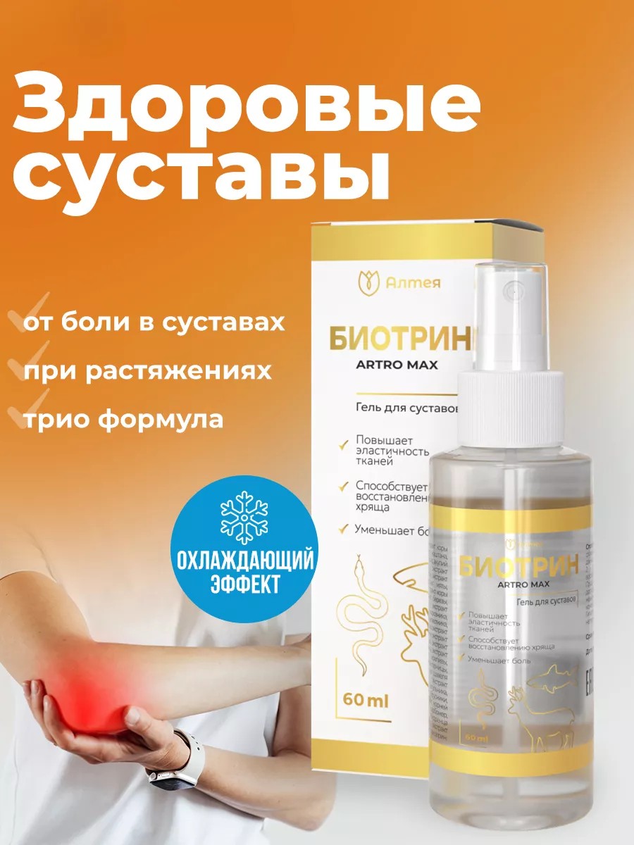 Биотрин - противовоспалительный гель с охлаждающим эффектом от компании Алтея. Натуральная мазь для больных суставов, снятия боли в спине, против отеков и воспалительных процессов.