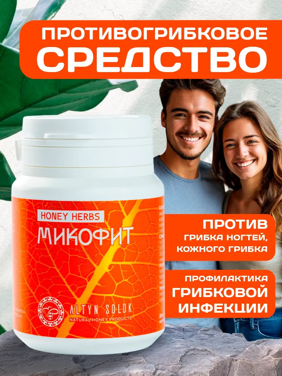 Выбирая Honey Herbs "Микофит", вы выбираете натуральное и эффективное средство от грибка. “АЛТЫН СОЛОК”- это полностью натуральные продукты, без ГМО, без глютена, ароматизаторов и консервантов.