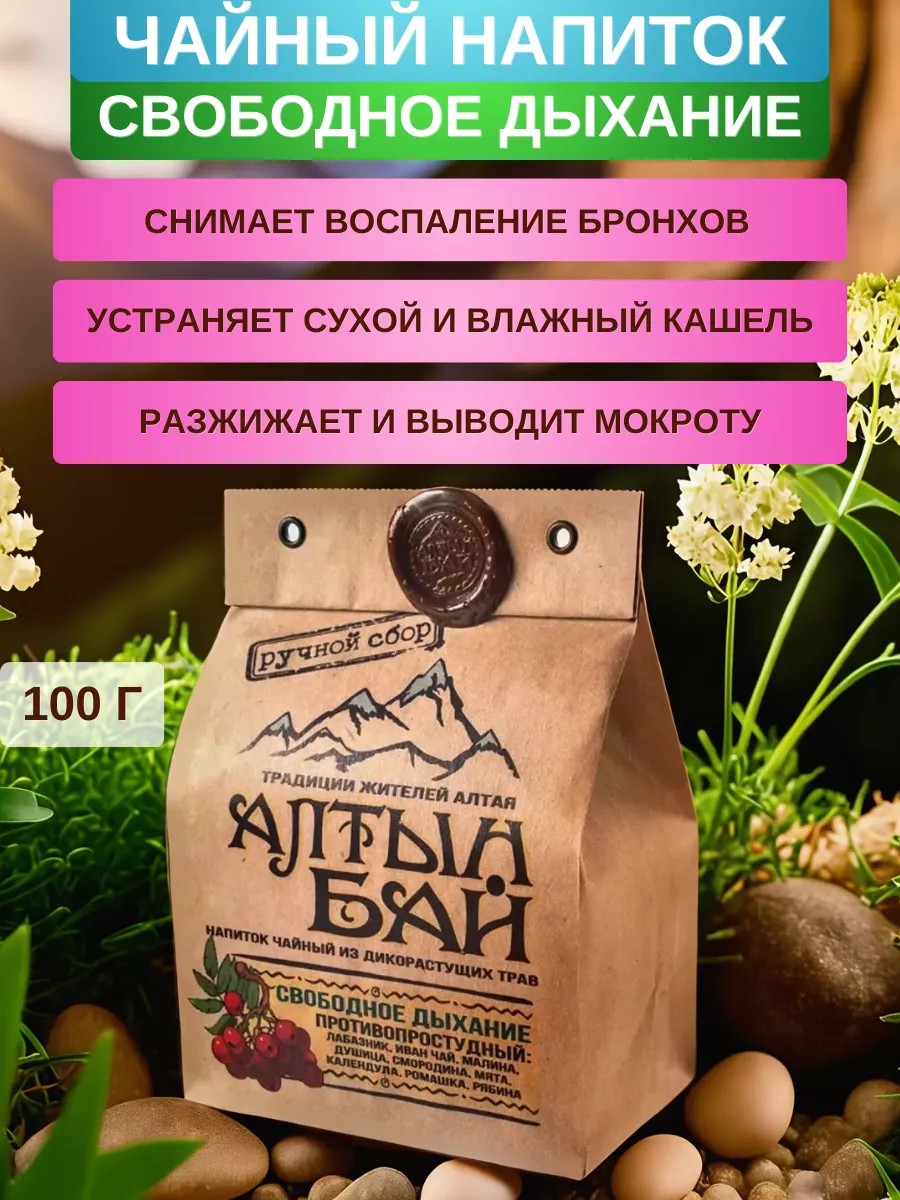Чайный напиток противопростудный Свободное дыхание, 100 г. Алтайский травяной чай, сбор от простуды, для дыхательных путей.