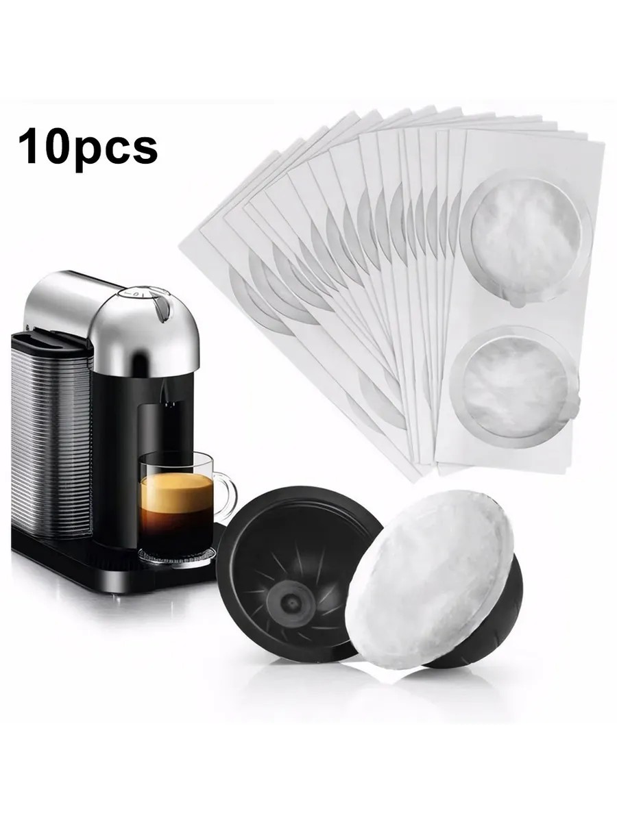 10 шт. алюминиевых крышек для фольги, самоклеющиеся уплотнительные пленки для капсул, одноразовые и многоразовые крышки для капсул кофе, крышки для капсул Nespresso Vertuo