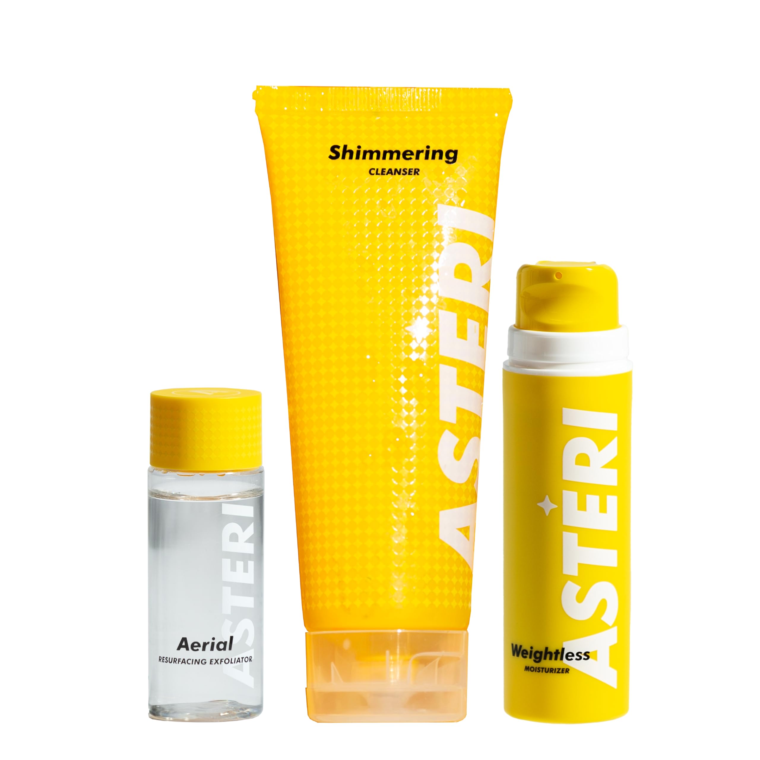 "Shimmering Cleanser Aerial Resurfacing Exfoliator Starlight Serum Bundle Experience glowing, radiant skin with this powerhouse 3-step skincare routine. The Shimmering Cleanser, Aerial Resurfacing Exfoliator, and Starlight Serum work together to deliver deep hydration, refine your complexion, and brighten your skin for a naturally radiant glow. Shimmering Cleanser – Start your skincare routine with this gentle yet powerful vegan cleanser. Infused with plant-derived AHAs, enzymes, and antioxidants, it deeply cleanses while relieving clogged pores and improving your complexion. Perfect for day or night, this cleanser nourishes and hydrates your skin, leaving it soft, refreshed, and balanced. Aerial Resurfacing Exfoliator – Say goodbye to dull, uneven skin. This everyday exfoliator doubles as a toner, minimizing pores and reducing redness while delivering lasting hydration. Formulated with a Superfruit Blend of antioxidants, it purifies, tones, and plumps your skin, preparing it for your complete skincare routine. Get smoother, more even skin with every use. Weightless Moisturizer – Finish your skincare routine with this lightweight, nutrient-rich moisturizer. Formulated with Upcycled Jackfruit, Hyaluronic Acid, Squalane, and Avocado Oil, it provides deep hydration without the heaviness. It brightens, smooths, and tones your skin while balancing oil production and calming redness. Main Benefits: A complete, gentle skincare routine for daily use Deep hydration and nourishment without heaviness Smooths, tones, and brightens complexion Perfect for all skin types: normal, oily, dry, combination, and sensitive Treat your skin to this powerful yet lightweight trio for a balanced, glowing complexion. Perfect for anyone seeking an easy, effective skincare routine."Skincare That Keeps Up with Your Active Life - Alumni Skincare was founded to honor the brilliant radiance that shines from within. As the first clean skincare brand for active individuals, our facial sets withstand makeup, sweat, and the outdoors. At Alumni, our mission is to bring out the inner star in everyone. Easy 3-Step Routine: Start using this skincare routine kit by prepping your skin with the Shimmering Cleanser for a clean base. Next, use the Aerial Resurfacing Exfoliator to polish and remove dead skin cells, followed by the Weightless Moisturizer to perfect your complexion and keep it glowing all day. Gentle Enough for Sensitive Skin - Specially made for all skin types, our skincare kit is infused with powerful ingredients like Plant-Derived AHAs, Squalane, and Hyaluronic Acid that helps calm and soothe skin. It minimizes the risk of reactions, making it the choice for those with delicate skin. Smooth, Hydrated, and Glowing Skin - Start your day with clear, fresh skin! This face kit for women delivers a complete skincare routine that cleanses, exfoliates, and hydrates for a radiant complexion. Experience smoother skin, reduced redness, and deep hydration with every use, leaving your face feeling fresh and bright all day. Nourish Your Skin Routine - Start your journey to a glowing complexion with this trio skin care kit. The Shimmering Cleanser gently cleanses and hydrates, while the Aerial Resurfacing Exfoliator smooths and tones. Finish with the Weightless Moisturizer for lasting hydration and radiant skin, every day.