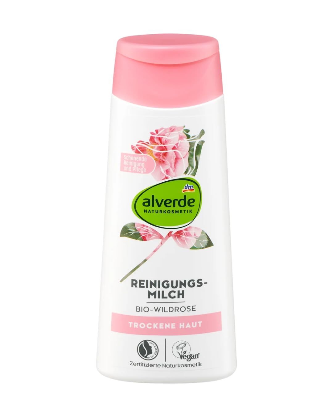 Cleansing milk for dry skin with organic wild rose, macadamia and jojoba oil, cleansing and caring effect, certified natural cosmetics. The mild cleansing milk from Alverde Naturkosmetisch gently frees the complexion from make-up and dirt particles. The formula with wild rose, macadamia and jojoba oil protects the skin against moisture loss, making the gentle milk ideal for dry skin. Recipe without microplastic and water-soluble purely synthetic polymers. SAFETY WARNING Spread the cleansing milk generously over the face, neck and décolleté. Then remove with a cotton pad or lukewarm water.alverde NATURKOSMETIK Cleansing Milk Wild Rose, 200 ml.alverde NATURKOSMETIK Reinigingsmelk Wilde Roos, 200 ml Reinigingsmelk voor de droge huid met biologische wilde roos, macadamia- en jojoba-olie, reinigende en verzorgende werking, gecertificeerde natuurlijke cosmetica. De milde reinigingsmelk van Alverde Naturkosmetisch bevrijdt de teint bijzonder voorzichtig van make-up en vuildeeltjes. Vanwege de formule met wilde roos, macadamia en jojoba-olie wordt de huid beschermd tegen vochtverlies, daardoor is de zachte melk uitstekend geschikt voor de droge huid. Recept zonder microplastic en in water oplosbare puur synthetische polymeren. VEILIGHEIDSWAARSCHUWING Verdeel de reinigingsmelk royaal over gezicht, hals en decolleté. Vervolgens met een wattenschijfje of lauw water verwijderen.alverde NATURKOSMETIK Reinigingsmelk Wilde Roos, 200 ml.