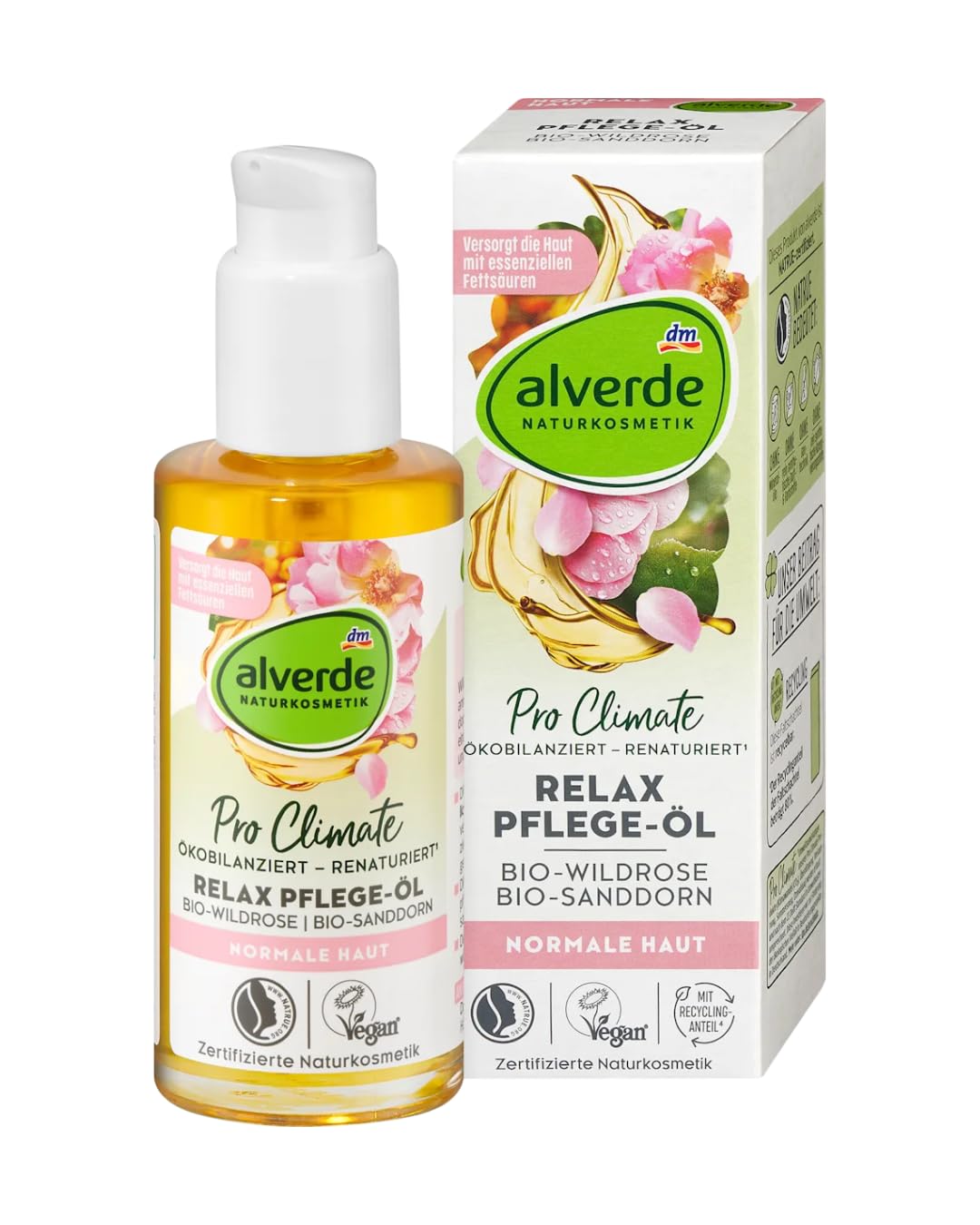 Per Climate, eco-balanced: makes your skin smooth and supple. Provides the skin with essential fatty acids. Gives a velvety soft skin feeling. The Alverde natural cosmetics relax care oil organic wild rose organic sea buckthorn can stimulate the vitality of the skin and promote your regeneration. Sea buckthorn is rich in vitamins and has a unique blend of natural active and active ingredients. The high-quality composition with natural oils of wild rose and sea buckthorn sustainably supplies your skin with essential fatty acids and makes it smooth and supple. The formula with almond and jojoba oil gently cares for your skin and gives a velvety soft skin feeling all day long. The pleasant, relaxing scent pampers your senses. SAFETY WARNING After showering or bathing, gently massage the oil into the still damp skin.alverde NATURKOSMETIK Relax care oil wild rose, sea buckthorn, 100 ml.alverde NATURKOSMETIK Relax verzorgende olie wilde roos, duindoorn, 100 ml Per Climate, ecobalanceerd: maakt je huid glad en soepel. Verzorgt de huid met essentiële vetzuren. Geeft een fluweelzacht huidgevoel. De Alverde natuurlijke cosmetica relax verzorgende olie biologische wilde roos biologische duindoorn kan de vitaliteit van de huid stimuleren en je regeneratie bevorderen. Duindoorn is rijk aan vitamines en heeft een unieke mix van natuurlijke actieve en actieve ingrediënten. De hoogwaardige samenstelling met natuurlijke oliën van wilde roos en duindoorn voorziet je huid duurzaam van essentiële vetzuren en maakt je glad en soepel. De formule met amandel- en jojoba-olie verzorgt je huid zacht en geeft de hele dag een fluweelzacht huidgevoel. De aangename, ontspannende geur verwent je zintuigen. VEILIGHEIDSWAARSCHUWING Masseer de olie na het douchen of baden zachtjes in de nog vochtige huid.alverde NATURKOSMETIK Relax verzorgende olie wilde roos, duindoorn, 100 ml.