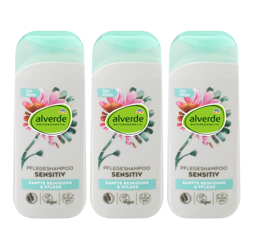 for Alverde Natural Cosmetic Sensitive Shampoo with Organic Echinacea and Organic Jojoba, 3-pack (3 x 200 ml): Alverde Natural Cosmetic Sensitive Shampoo contains plant-based surfactants. It gently and softly cleanses the hair and scalp. The formula with organic echinacea and organic jojoba extracts, vegetable glycerin, and L-arginine has a relaxing and moisturizing effect on the scalp and hair. Formula free of microplastics and water-soluble synthetic polymers. Directions for use: Massage the shampoo into wet hair and leave on briefly. Then rinse thoroughly. Keep out of reach of children. Ingredients: Aqua, Cocoglucoside, Glycerin, Lauryl Glucoside, Sodium Coco Sulfate, Betaine, Citric Acid, Arginine, Disodium Cocoyl Glutamate, Parfum , Levulinic Acid, Sodium Chloride, Glyceryl Oleate, PCA Glyceryl Oleate, Xanthan Gum, Sodium PCA, Sodium Levulinate, p-Anisic Acid, alcohol, sodium cocoyl glutamate, linalool , limonene , benzyl alcohol , Echinacea Purpurea Extract , calcium sulfate, magnesium sulfate, Simmondsia Chinensis Seed Extract , tocopherol, hydrogenated vegetable citrate, lecithin, Ascorbyl. Ingredients from certified organic farming - Made from natural essential oils. Manufactured for: Dm-drogerie markt GmbH Co. KG, Am dm-Platz 1, 76227 Karlsruhe Ingredients Aqua, Coco-Glucoside, Glycerin, Lauryl Glucoside, Sodium Coco-Sulfate, Betaine, Citric Acid, Arginine, Disodium Cocoyl Glutamate, Parfum , Levulinic Acid, Sodium Chloride, Glyceryl Oleate, PCA Glyceryl Oleate, Xanthan Gum, Sodium PCA, Sodium Levulinate, p-Anisic Acid, Alcide Ohol, Sodium Cocoyl Glutamate, Linalool, Limondsia Chinensis , Benzyl Alcohol , Echinacea Purpurea Extract , Calcium Sulfate, Magnesium Sulfate, Simmondsia Chinensis Seed Extract , Tocopherol, Hydrogenated Vegetable Glycerides Lecate, Ithin, Ascorbyl Palate . Redients of cercer Product from organic farming - Based on natural essential oils P.when('A').execute(function(A) { A.on('a:expander:toggle_description:toggle:collapse', function(data) { window.scroll(0, data.expander. expander[0].offsetTop-100) }) }) Safety Warning Avoid contact with eyes and mucous membranes. Use only on intact skin. Avoid direct sunlight. Do not store above 25 C. Keep out of reach of children See moreVegan. Silicone-free. Contains organic echinacea and organic jojoba. For irritated and sensitive scalps. alverde NATURKOSMETIK Sensitiv Shampoo Organic Echinacea Organic Jojoba Pack of 3 (3 x 200 ml).Description du produit alverde Shampoing cosmétique naturel Sensitiv à l'échinacée bio, au jojoba bio, lot de 3 (3 x 200 ml) : le shampooing Alverde Natural Cosmétique Sensitiv contient des tensioactifs végétaux. Il nettoie les cheveux et le cuir chevelu en douceur et en douceur. La formule à l'extrait d'échinacée bio et de jojoba bio, à la glycérine végétale et à la L-arginine a un effet relaxant et hydratant sur le cuir chevelu et les cheveux. Formule sans microplastiques ni polymères synthétiques solubles dans l'eau. Conseils d'utilisation : massez le shampooing sur cheveux humides et laissez agir brièvement. Rincez ensuite abondamment. Tenir hors de portée des enfants. Ingrédients : Aqua, Cocoglucoside, Glycérine, Lauryl Glucoside, Sodium Coco Sulfate, Betaine, Citric Acid, Arginine, Disodium Cocoyl Glutamate, Parfum , Levulinic Acid, Sodium Chloride, Glyceryl Oleate, PCA Glyceryl Oleate, Xanthan Gum, Sodium PCA, Sodium Levulinate, p-Anisic Acic. cid, alcool, sodium cocoyl glutamate, linalool , limonene , benzylique alcohol , Echinacea Purpurea Extract , sulfate de calcium, sulfate de magnésium, Simmondsia Chinensis Seed Extract , tocophérol, citrate végétale hydrogéné, lécithine, Ascorbyl Palais Ingrédients issus de l'agriculture biologique certifiée - À partir d'huiles essentielles naturelles. Fabriqué pour : Dm-drogerie markt GmbH Co. KG, Am dm-Platz 1, 76227 Karlsruhe Ingrédients Aqua, Coco-Glucoside, Glycerin, Lauryl Glucoside, Sodium Coco-Sulfate, Betaine, Citric Acid, Arginine, Disodium Cocoyl Glutamate, Parfum , Levulinic Acid, Sodium Chloride, Glyceryl Oleate, PCA Glyceryl Oleate, Xanthan Gum, Sodium PCA, Sodium Levulinate, p-Anisic Acid, Alcide. ohol, sodium Cocoyl glutamate, linalool, limondsia chinensis , alcool benzyl , extrait d'échinacea purpurea , sulfate de calcium, sulfate de magnésium, extrait de graines de Simmondsia Chinensis , tocopherol, lécate végétable glycérides hydrogéné, ithin, ascorbylpalate . Redients de cercerProduit issu de l'agriculture biologique - À base d'huiles essentielles naturelles P.when('A').execute(function(A) { A.on('a:expander:toggle_description:toggle:collapse', function(data) { window.scroll(0, data.expander. expander[0].offsetTop-100) }) }) Avertissement De Sûreté Éviter tout contact avec les yeux et les muqueuses. Utiliser uniquement sur une peau intacte. Éviter l'exposition directe au soleil. Ne pas conserver à plus de 25 C. Tenir hors de portée des enfants Voir plusVégétalien. Sans silicone. Contient de l'échinacée bio et du jojoba bio. Pour cuir chevelu irrité et sensible. alverde NATURKOSMETIK Sensitiv Shampooing Echinacea Bio Jojoba Bio Lot de 3 (3 x 200 ml).alverde NATURKOSMETIK Shampooing Sensitiv Bio Echinacea Jojoba Bio 3 x 200 ml