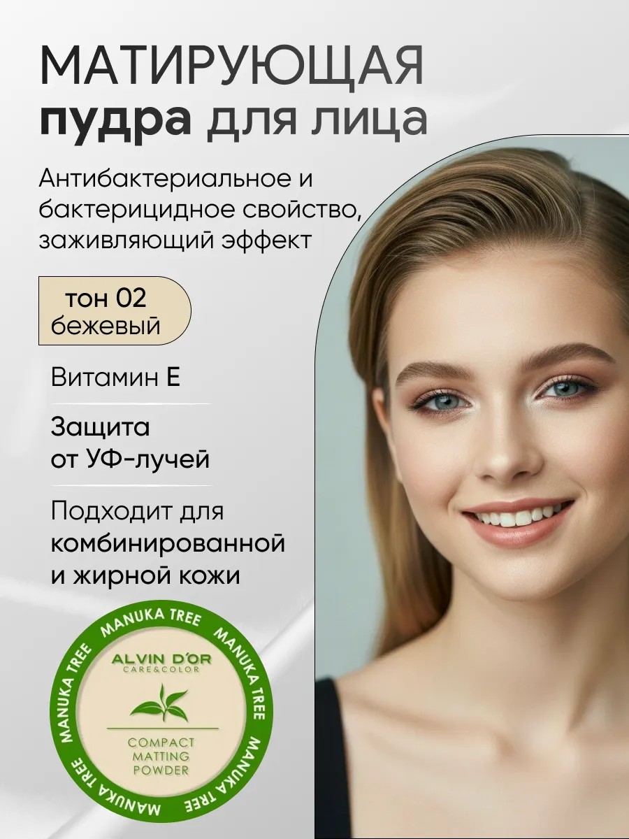Alvin D'or Компактная матирующая пудра для лица тон 02 бежевый