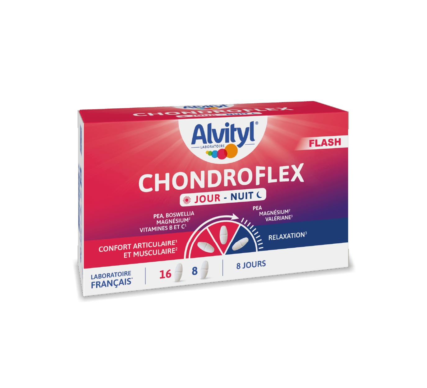 ALVITYL – Chondroflex Jour Nuit – Formule Flash - Double action : jour nuit - PEA – Confort articulaire et musculaire – relaxation - 8 Jours