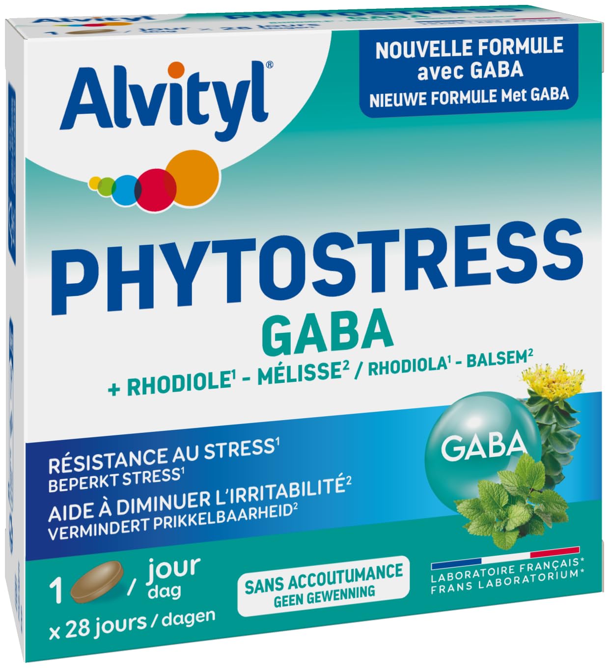 Stress is a physiological mechanism developed by the body to respond to a difficult situation. Busy days, work pressure, overwork and exams are all factors that generate stress and nervousness. Nervous balance and quality of sleep can then be altered. These stressful situations can become debilitating on a daily basis. Alvityl Phytostress is a food supplement based on GABA and two plants: rhodiola which helps increase resistance to stress and lemon balm which helps reduce irritability INGREDIENTS Ingredients: Bulking agent: Microcrystalline cellulose gamma-aminobutyric acid (GABA): Rhodiola rosea L. root extract (European origin) Melissa officinalis L. leaf extract (European origin) anti-caking agent: magnesium stearate: coating agent: hydroxypropylmethylcellulose. SAFETY WARNING Do not exceed the recommended daily dose. Cannot replace a varied and balanced diet and a healthy lifestyle. Keep out of reach of children. All product reviews and comments are the sole responsibility of their authors and are in no way endorsed or approved by the supplier. If you have any questions about this product or if you experience any adverse effects, please contact serviceconso21 gmail.com. 1 tablet day to be swallowed with a large glass of water, preferably in the morning. 1 box 28 days of intake. Gluten-free, Lactose-free, Suitable for a vegan diet, FSC. Combination of an inhibitory neurotransmitter of the central nervous system: GABA with two plants: Rhodiola and lemon balm. FOR WHOM: Need to relax. Le stress est un mécanisme physiologique développé par le corps afin de répondre à une situation difficile. Les journées denses, la pression au travail, le surmenage ainsi que les examens sont autant de facteurs générateurs de stress et de nervosité. L'équilibre nerveux et la qualité du sommeil peuvent alors être altérés. Ces situations de stress peuvent devenir handicapantes au quotidien. Alvityl Phytostress est un complément alimentaire à base de GABA et de deux plantes: la rhodiole qui aide à augmenter la résistance au stress et la mélisse qui aide à diminuer l'irritabilité INGRÉDIENTS Ingrédients : Agent de charge: Cellulose microcristalline acide gamma-aminobutyrique (GABA): extrait de racine de Rhodiola rosea L. (origine Europe) extrait de feuille de Melissa officinalis L. (origine Europe) anti-agglomérant : stéarate de magnésium: agent d'enrobage: hydroxypropylmethylcellulose. AVERTISSEMENT DE SÛRETÉ Ne pas dépasser la dose journalière recommandée. Ne peut remplacer une alimentation variée et équilibrée et un mode de vie sain. Tenir hors de portée des enfants. Tout avis et commentaires relatifs aux produits sont de la responsabilité unique de leurs auteurs, ils ne sont en aucun cas cautionnés ou approuvés par le fournisseur. Si vous avez des questions concernant ce produit ou en cas de survenue d'un effet indésirable, veuillez contacter serviceconso21 gmail.com. 1 comprimé jour à avaler avec un grand verre d'eau, de préférence le matin. 1 boite 28 jours de prise. Sans gluten, Sans lactose, Convient à une alimentation vegan, FSC. Association d'un neurotransmetteur inhibiteur du système nerveux central : le GABA avec deux plantes : La rhodiole et la mélisse. POUR QUI : Besoin de se détendre.