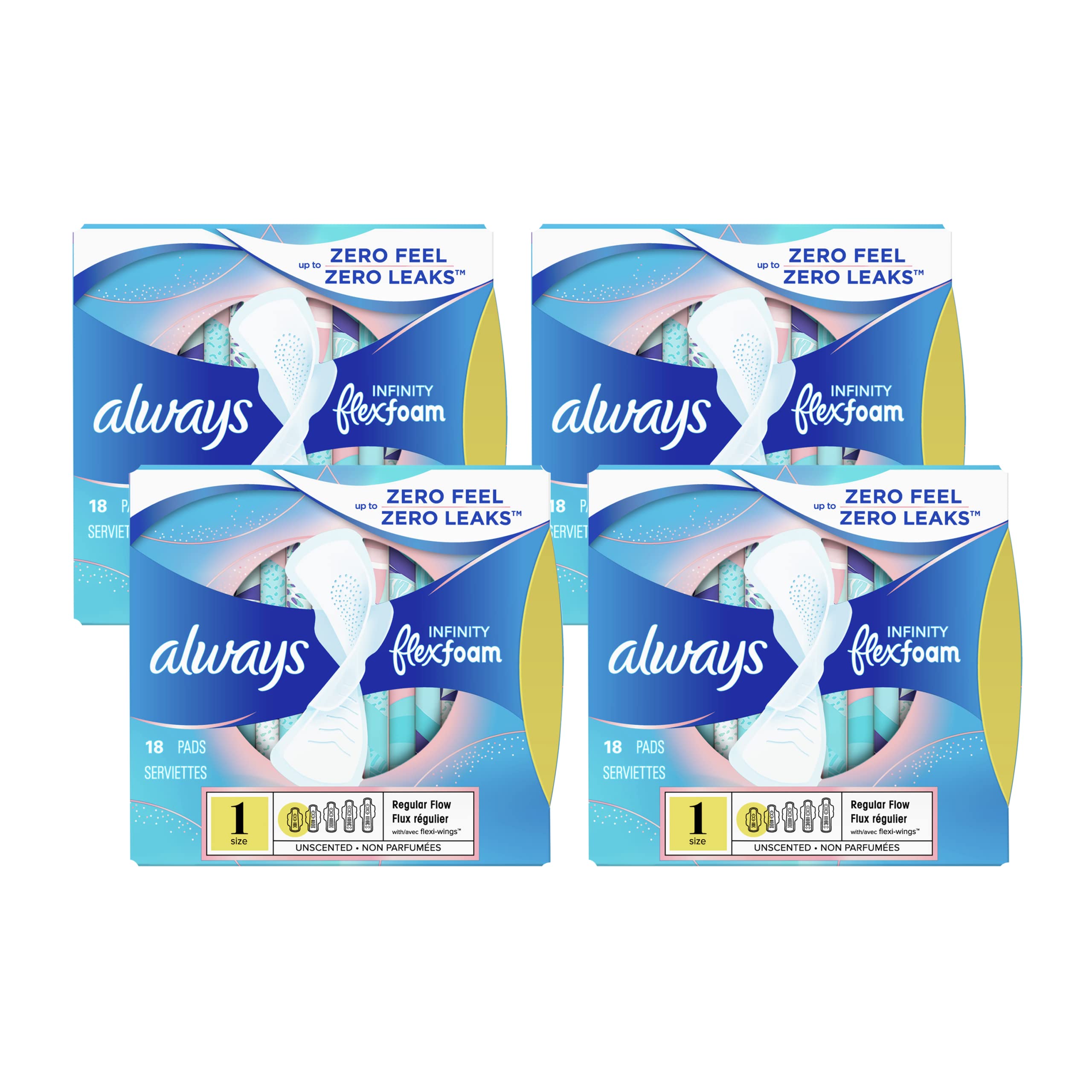 Always Infinity Feminine Pads for Women Size 1 Regular with Wings unscented 108ct