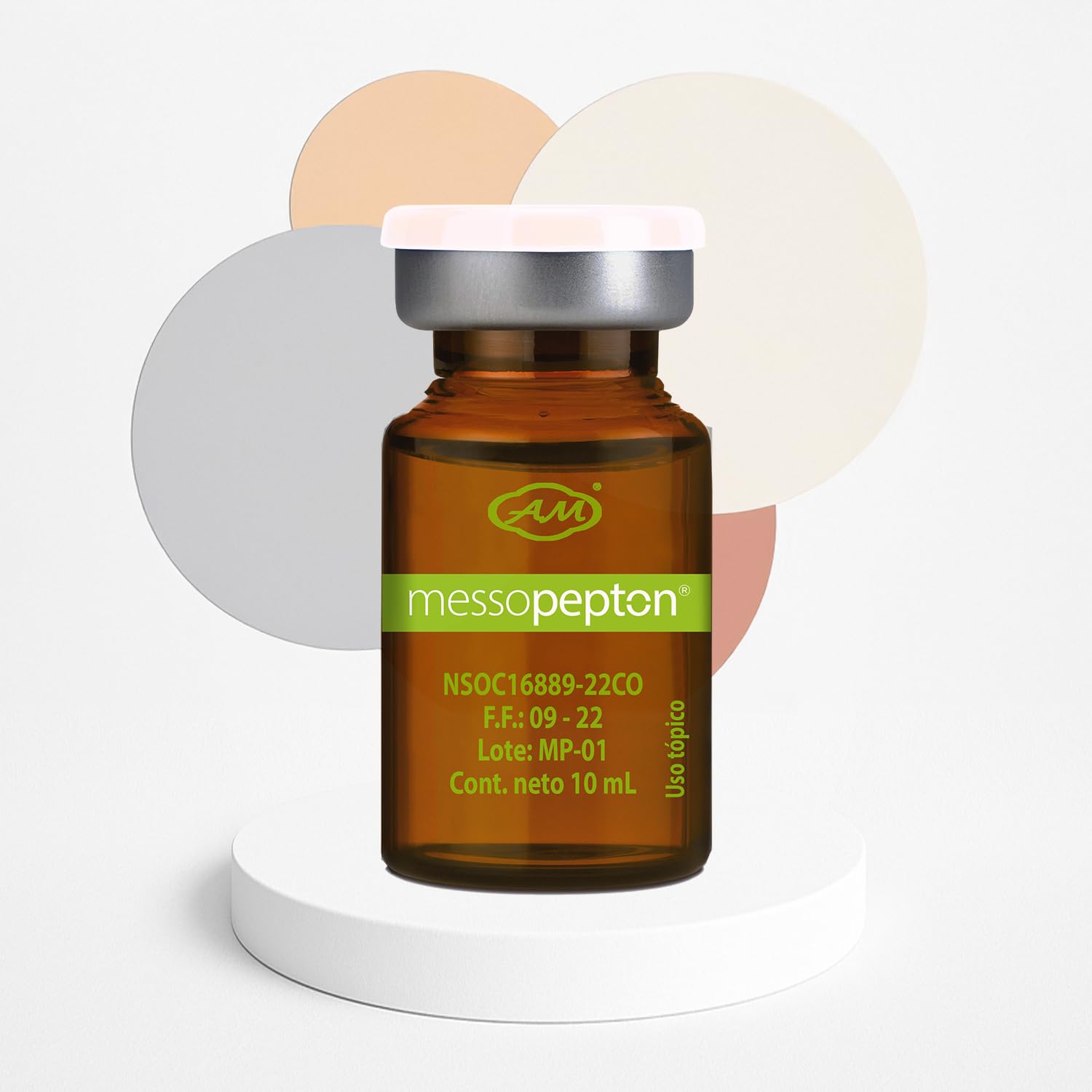 AM ARMESSO Messopepton is a cutting-edge cosmetic peptide complex designed for use in professional aesthetic care routines. Formulated with Leucine and bioengineered peptides, this topical solution supports the visible improvement of muscle tone and skin firmness, particularly in clients following advanced body care or physique-sculpting programs. Each box contains 5 sterile vials (10ml 0.338 fl. oz each). Messopepton may be applied to targeted areas to promote the cosmetic appearance of firmness, vitality, and physical tone. For professional external use only. This is a cosmetic product. Not intended to diagnose, treat, cure, or prevent any disease.