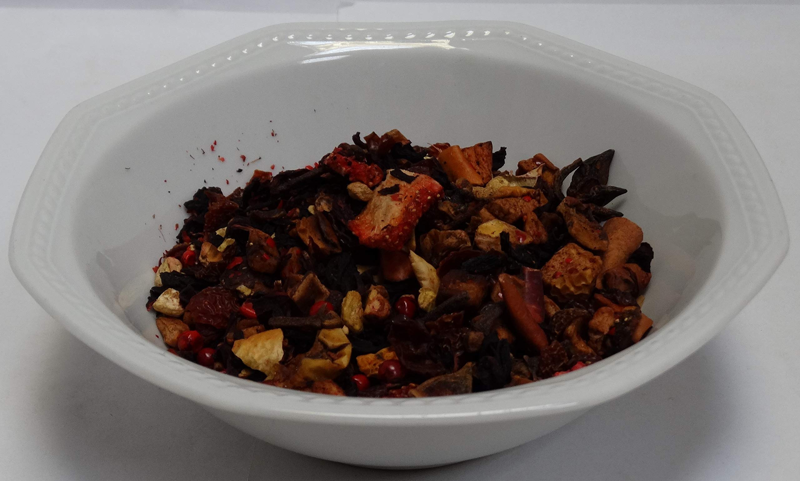 A joyful, colorful, and quintessentially Christmas blend: large slices of strawberry and star anise stand out and pique your curiosity about the taste. Enjoying this fruit tea blend, you'll discover a fruity and spicy variety that pairs perfectly with mulled wine and the festive Christmas atmosphere. INGREDIENTS Apple pieces, hibiscus flowers, lily of the valley bark, cinnamon sticks, star anise, ginger pieces, pink peppercorns, flavoring, freshness. Strawberry slices, cloves. INSTRUCTIONS 5 teaspoons per 1 liter of boiling water - Water temperature: 100 C - Brewing time: 10 minutes. See more
