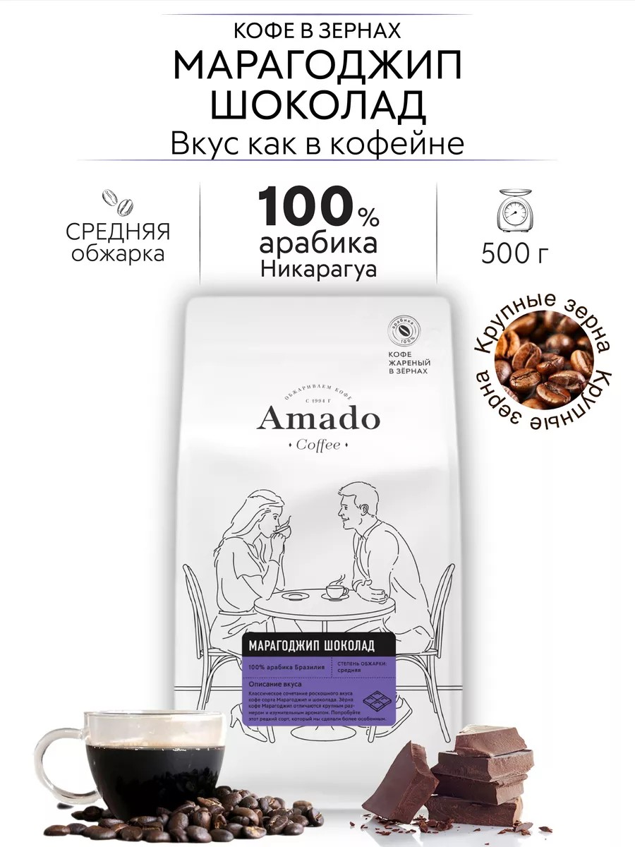 Амадо Кофе в зернах Марагоджип Шоколад, 500 гр