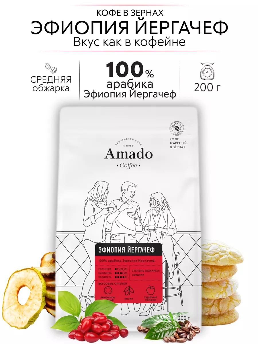 Амадо AMADO Эфиопия Йергачеф кофе в зернах, 200 гр