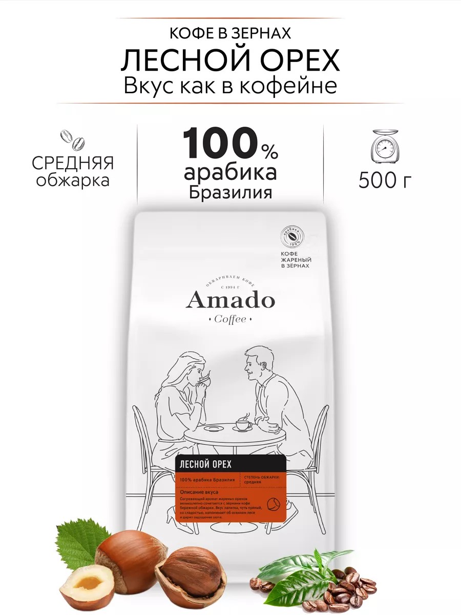 Амадо Лесной орех кофе ароматизированный в зернах, 500 гр