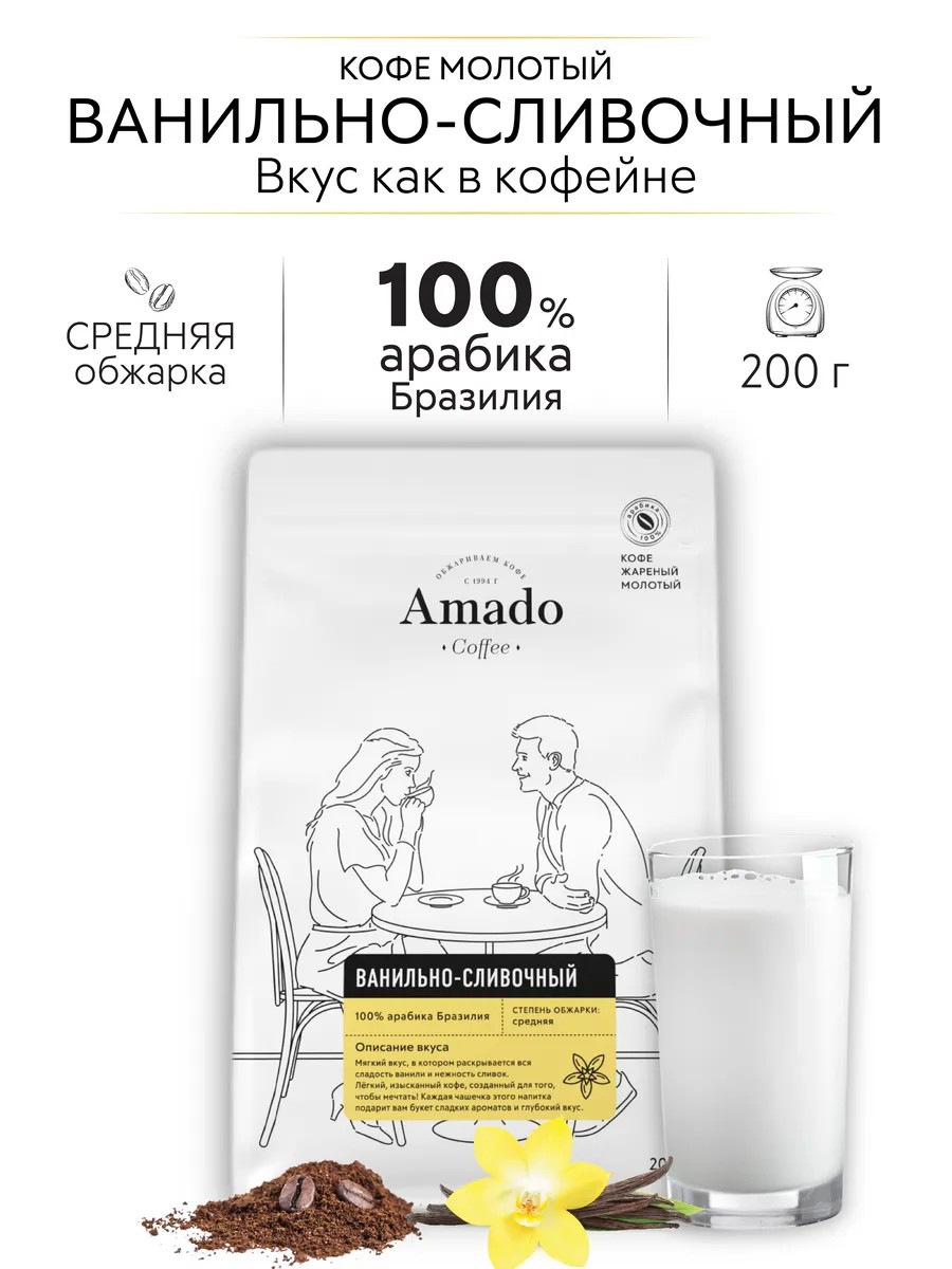 Амадо Кофе молотый Ванильно-сливочный, 200 гр