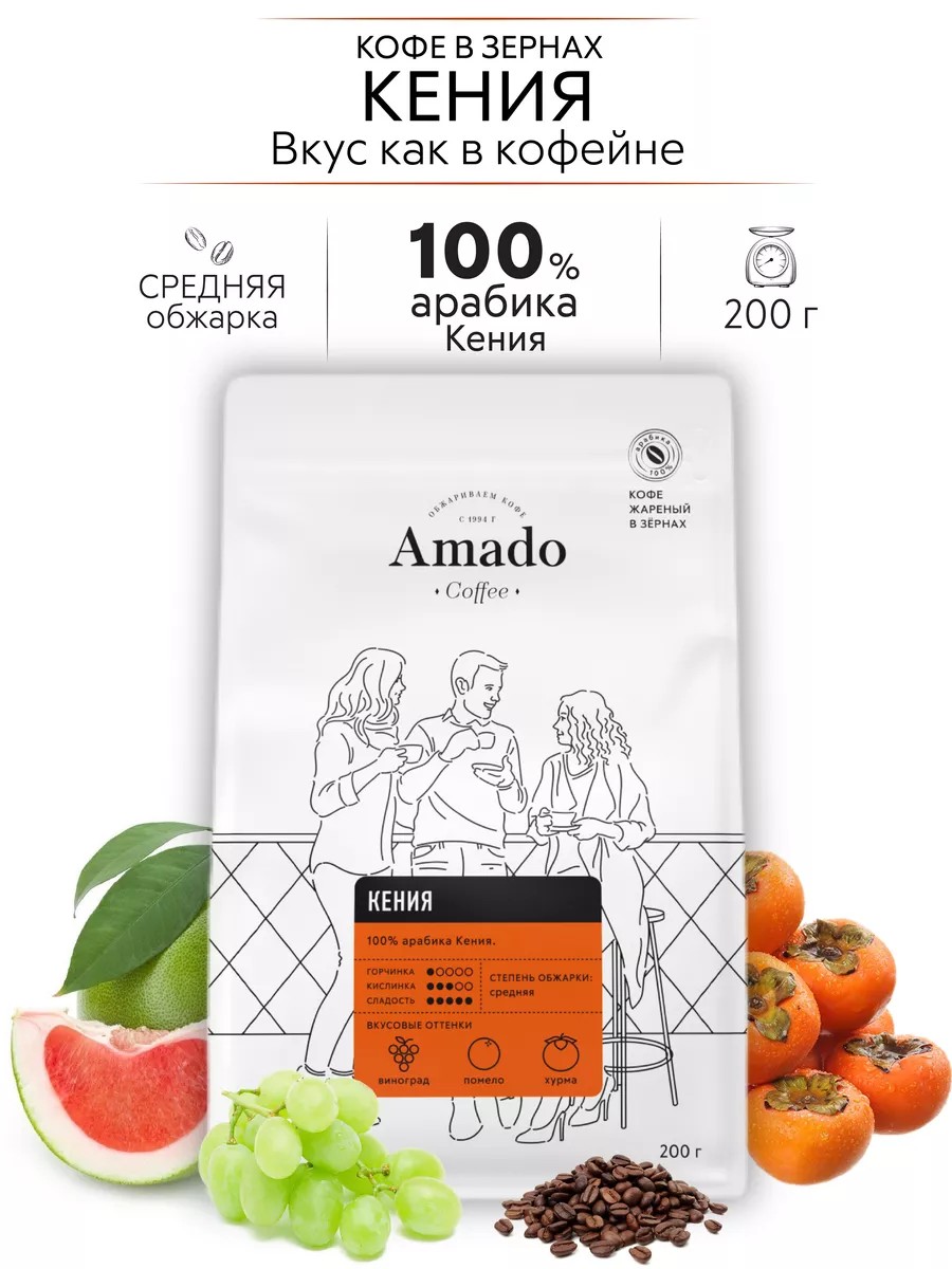 Амадо Кения кофе в зернах, 200 гр
