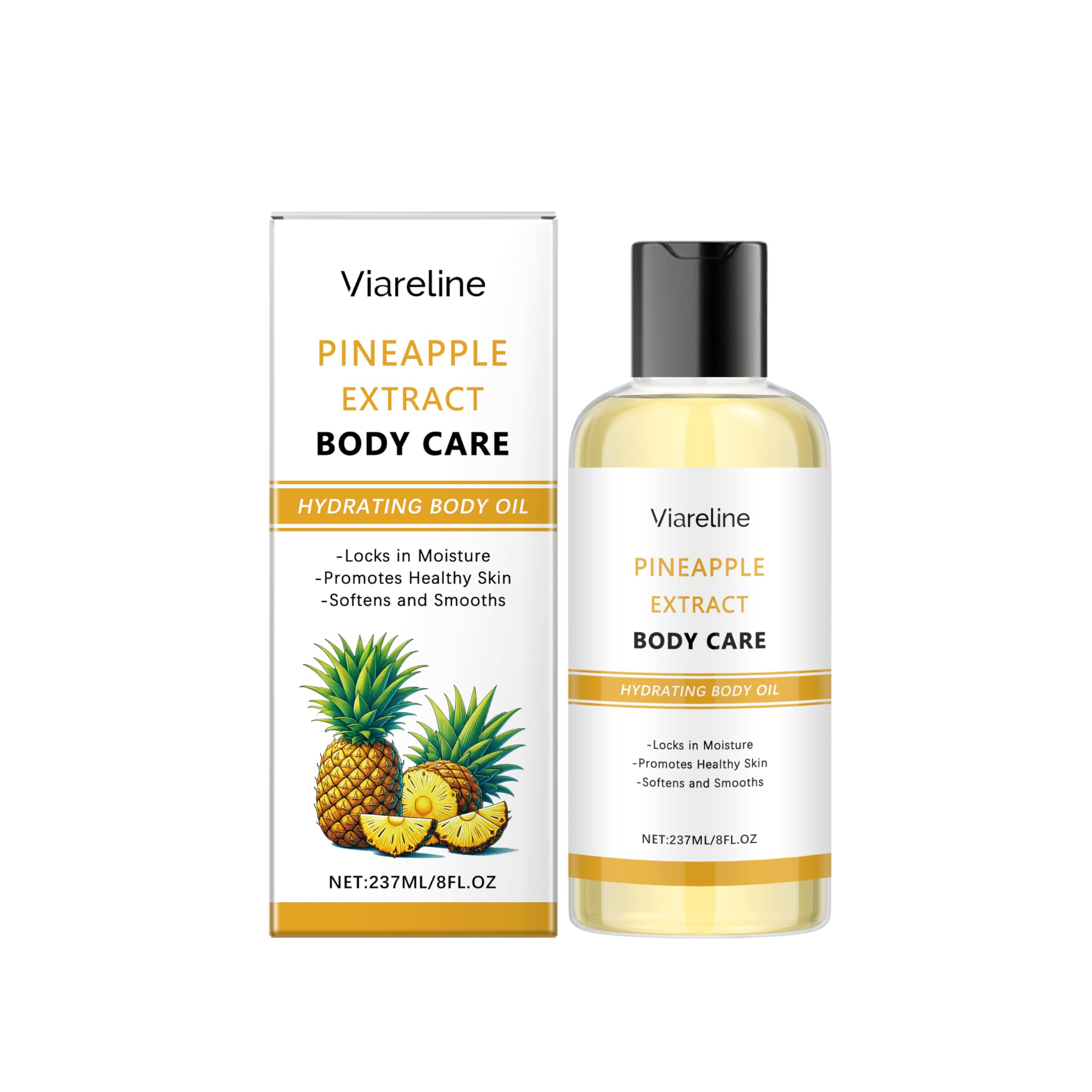 VERSATILE USE: Suitable for various skin types, this 237ml 8fl.oz body oil can be used all over body for comprehensive moisturizing and skin-smoothing benefits. DEEP MOISTURIZING: Effectively nourishes and hydrates skin deeply, helping to repair rough patches and improve overall skin texture. FAST ABSORPTION: Light, non-sticky texture that quickly absorbs into skin, making it perfect for daily use without leaving any greasy residue. PINEAPPLE EXTRACT: Contains natural pineapple fruit extract that provides a delightful aroma while enhancing skin softness and maintaining long-lasting moisture. NATURAL INGREDIENTS: Features jojoba seed oil to repair skin barrier and improve elasticity, plus Vitamin E to protect and maintain healthy, radiant skin.