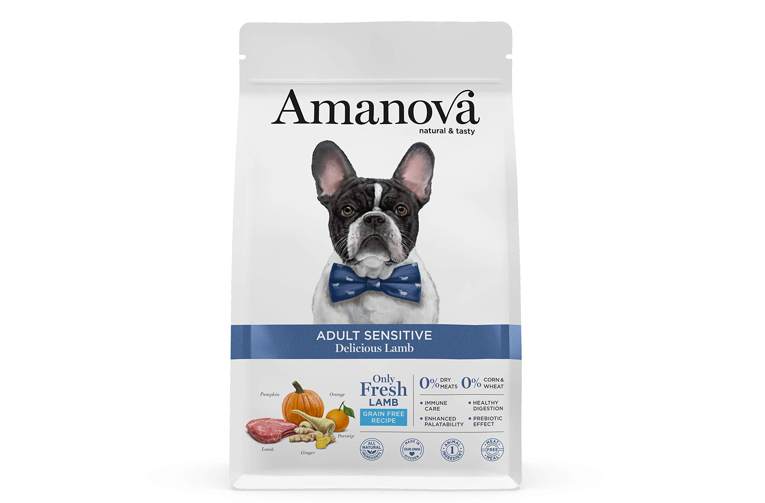Made with only the freshest lamb, this grain-free dog food is ideal for adult dogs over 12 months old, especially those with sensitive skin or stomachs. The hypoallergenic recipe contains only natural ingredients and is free from meat meal.Grain-free. Cruelty-free. Made in our kitchen. Meat-free. 100 natural - 100 single-protein - 100 hypoallergenic. Fabriquée uniquement avec l'agneau le plus frais, cette nourriture pour chiens sans céréales est idéale pour les chiens adultes de plus de 12 mois, en particulier ceux à la peau ou à l'estomac sensibles. La recette hypoallergénique ne contient que des ingrédients naturels et ne contient pas de farine de viande.Grain Free. Cruelty Free. Fabriqué dans notre cuisine. Sans farine de viande. 100 naturel - 100 monoprotéique - 100 hypoallergénique.