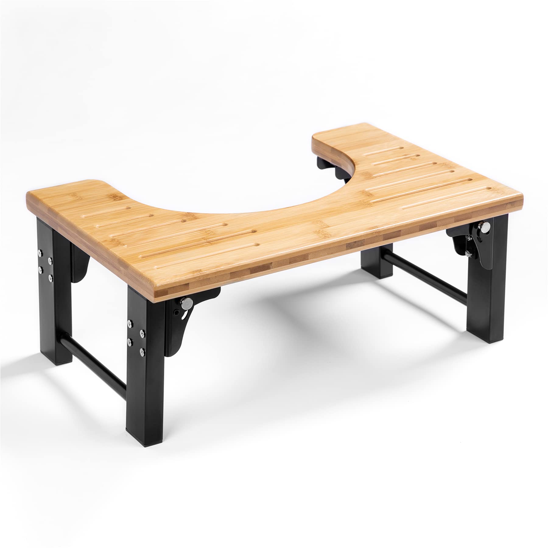 AmazerBath Bamboo Toilet Stool,Foldable Toilet Stool with Black Stainless Steel Legs,7 Inches Foldable Bamboo Toilet Stool, Men, Women, Natural Color
