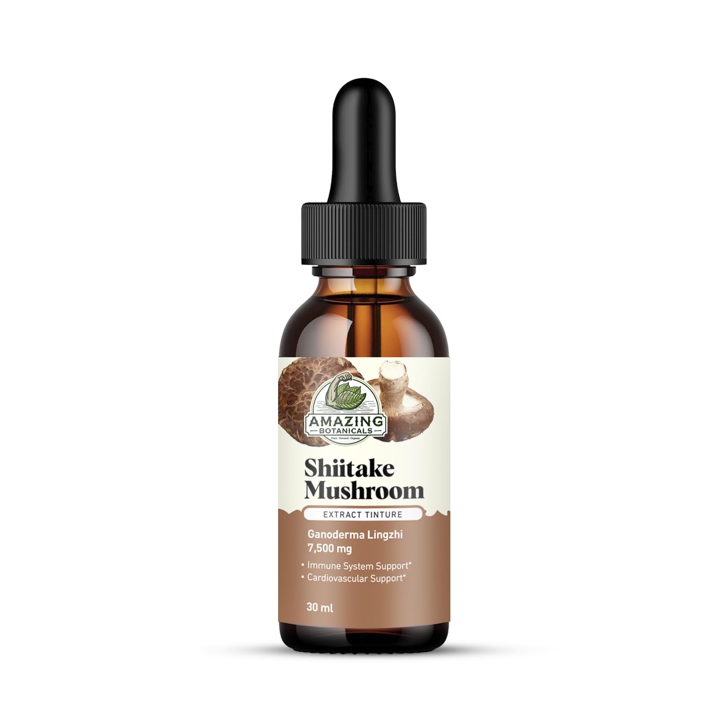 Amazing Botanicals Shiitake Mushroom Extract Tincture - 7 500mg Immune Support Supplement Containing 30% Polysaccharide in Each - Mushroom Complex with Powerful Antioxidant for Overall Wellbeing