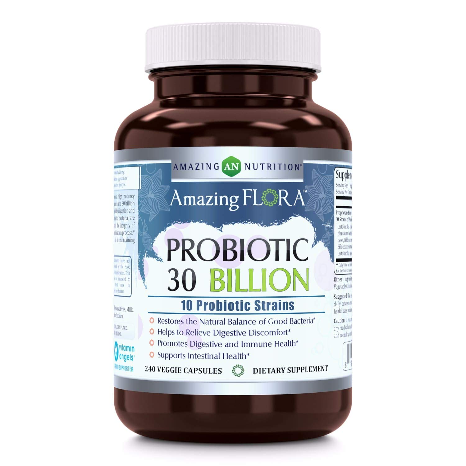 Amazing Flora Probiotic 10 Best Probiotics Strains Veggie Capsules -Including Acidophilus plantarum rhamnosus etc (30 Billion 240 Count)