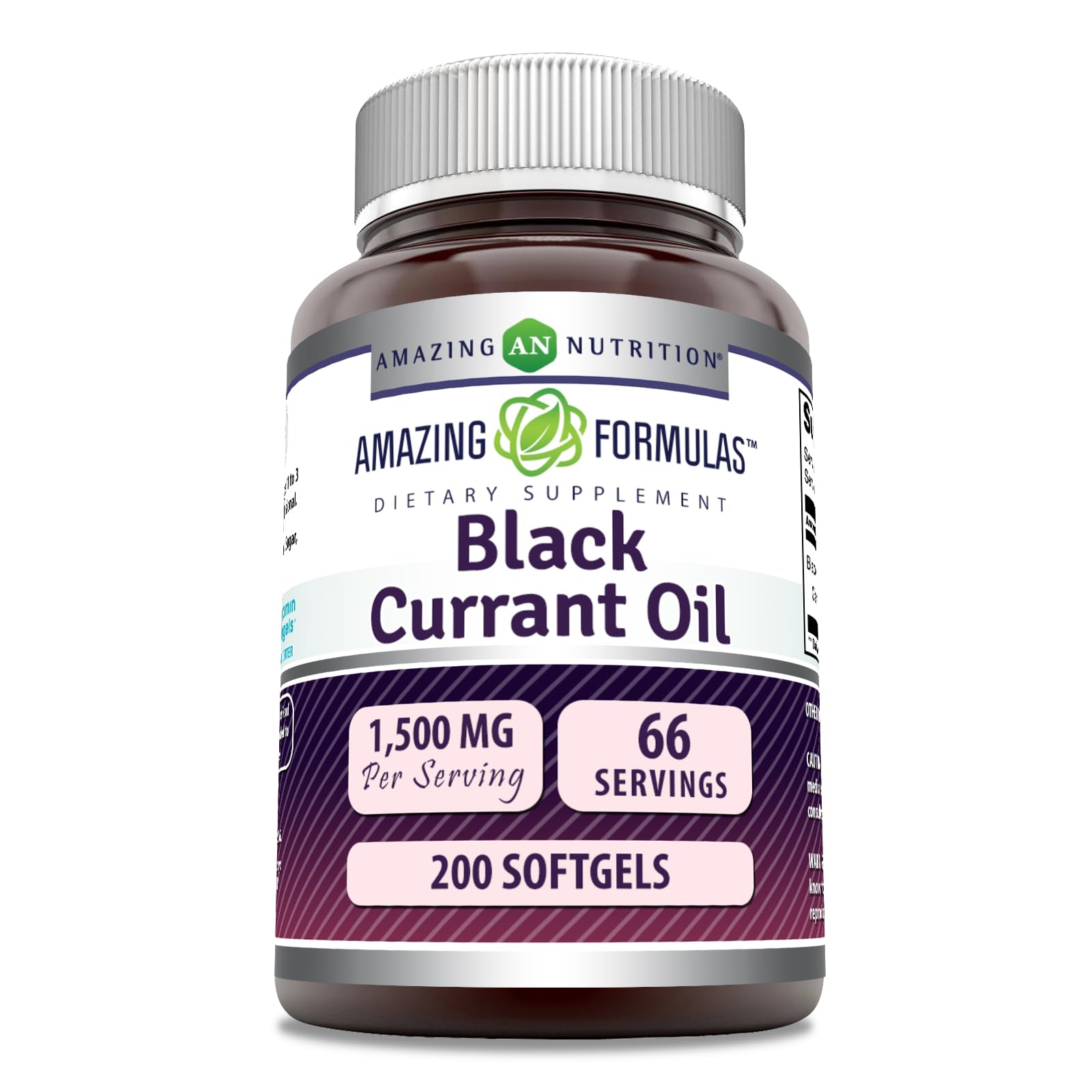 Amazing Formulas Black Currant Oil 1500 Mg Per Serving | Softgels | with GLA (Gamma-Linolenic Acid) | Non-GMO | Gluten Free (1 Pack 200 Count) 200 Count 1 Count (Pack of 1)