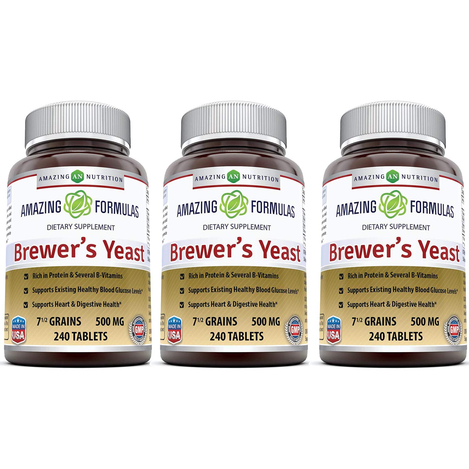 Amazing Formulas Brewers Yeast Tablets 7.5 Grain 500mg Tablets - Supports Healthy Metabolism * Promotes Heart Health (240 (3 Pack))