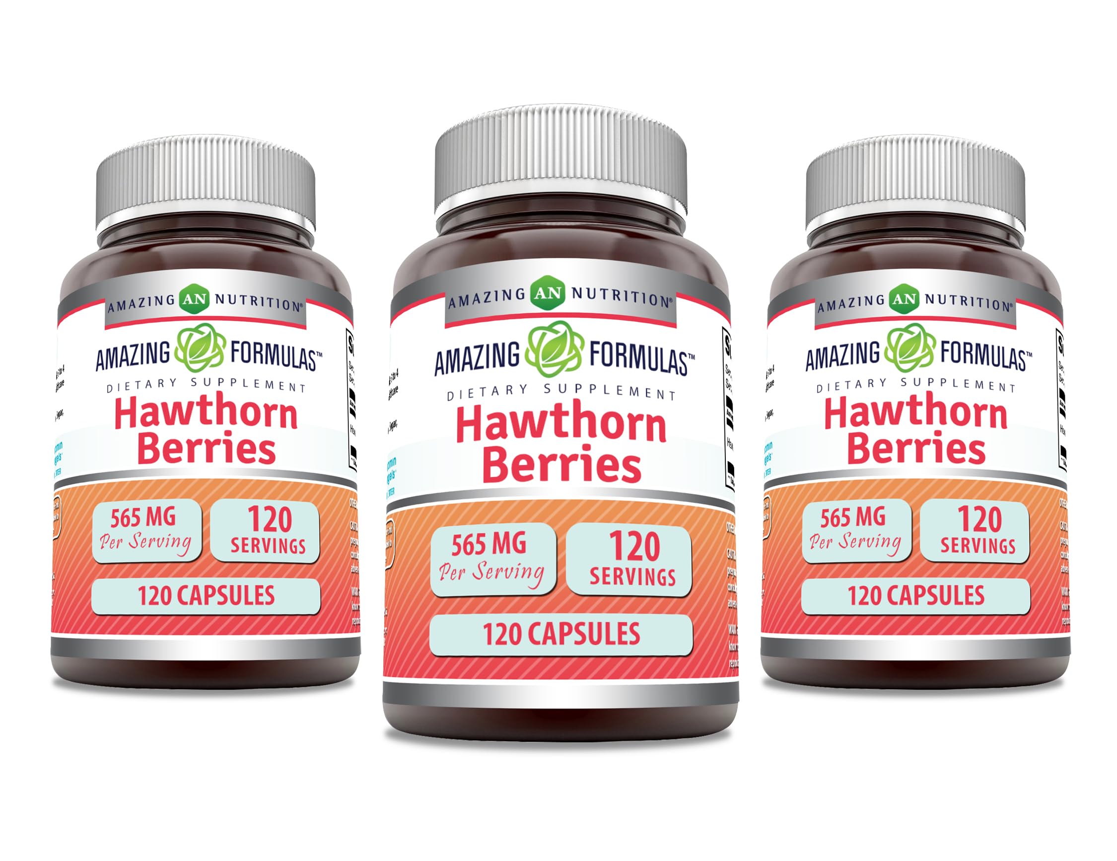 Amazing Formulas Hawthorn Berries Supplement | 565 Mg | Capsules | Non-GMO | Gluten-Free | Made in USA (3 Pack | 120 Count)