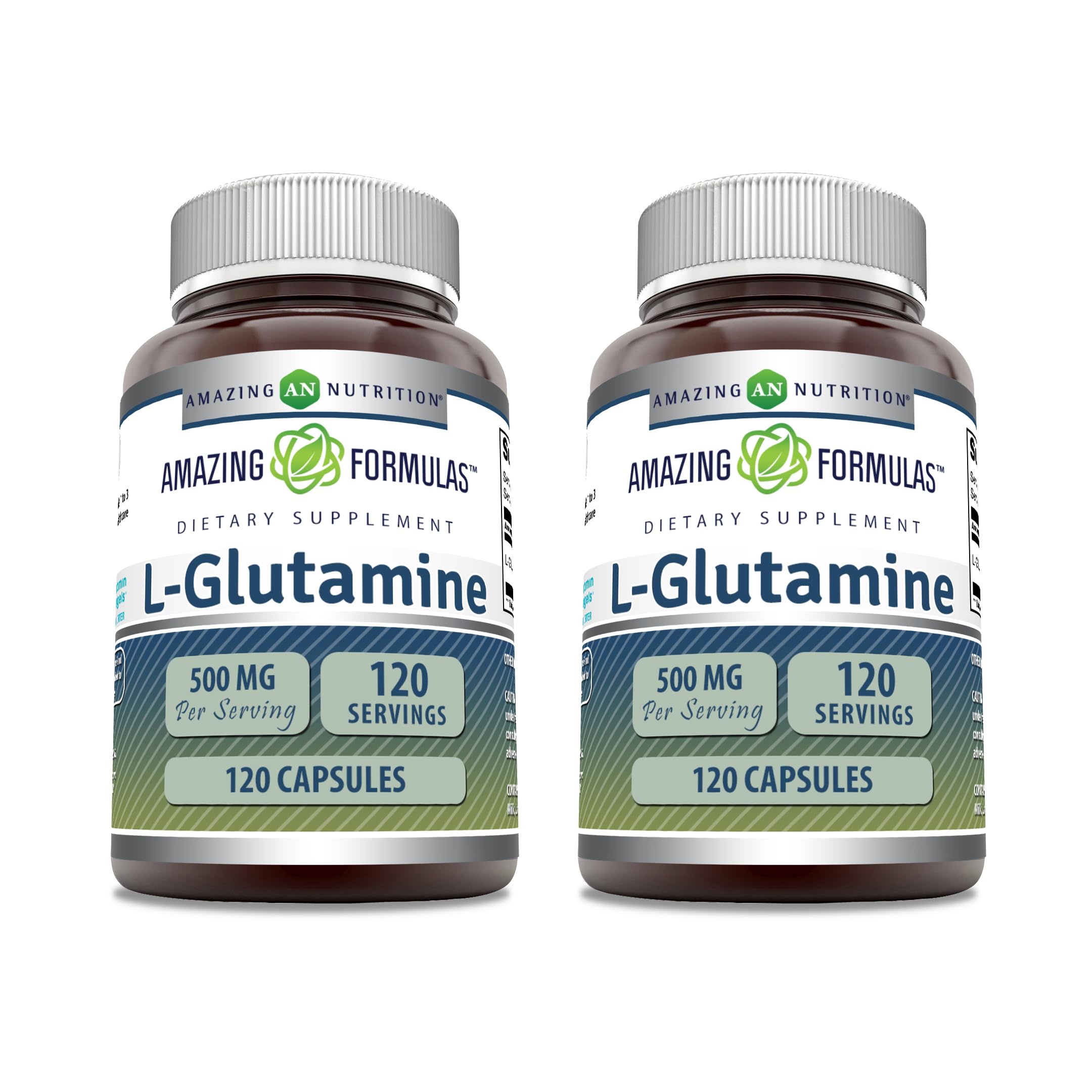 Amazing Formulas L-Glutamine 500 Mg Capsules | Amino Acid Supplement | Non-GMO | Gluten Free | Made in USA (2 Pack 120 Count)