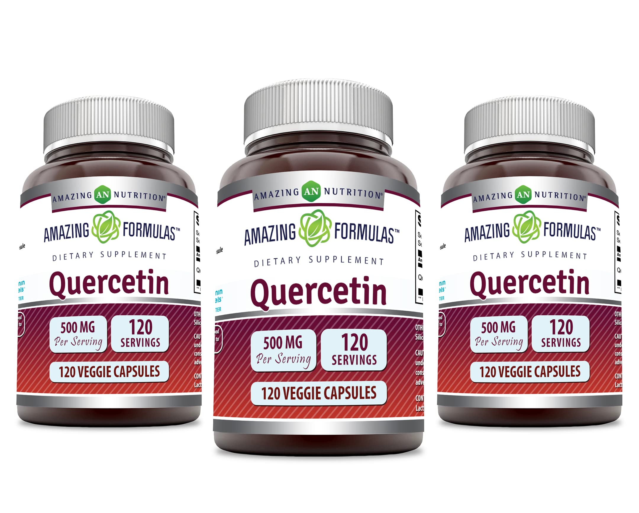 Amazing Formulas Quercetin 500mg Veggie Capsules Supplement | Non-GMO | Gluten Free | Supports Overall Health & Well Being (120 Count | 3 Pack)
