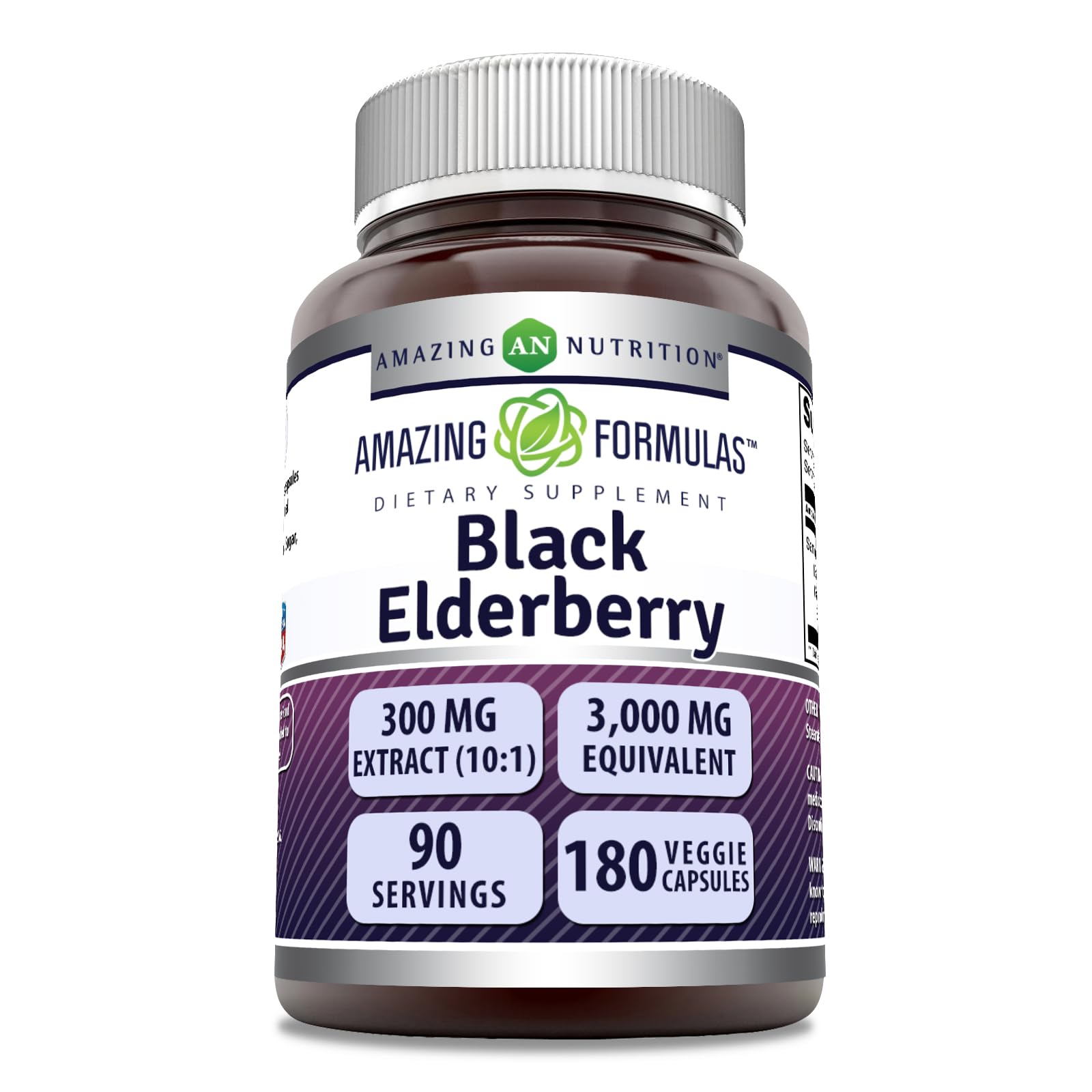 Amazing Formulas Sambucus Black Elderberry | 300 Mg Extract 10:1 (3000 Mg Equivalent) | Veggie Capsules | Non-GMO | Gluten-Free | Made in USA (180 Count 1 Pack) Unflavored 1 Count (Pack of 1)