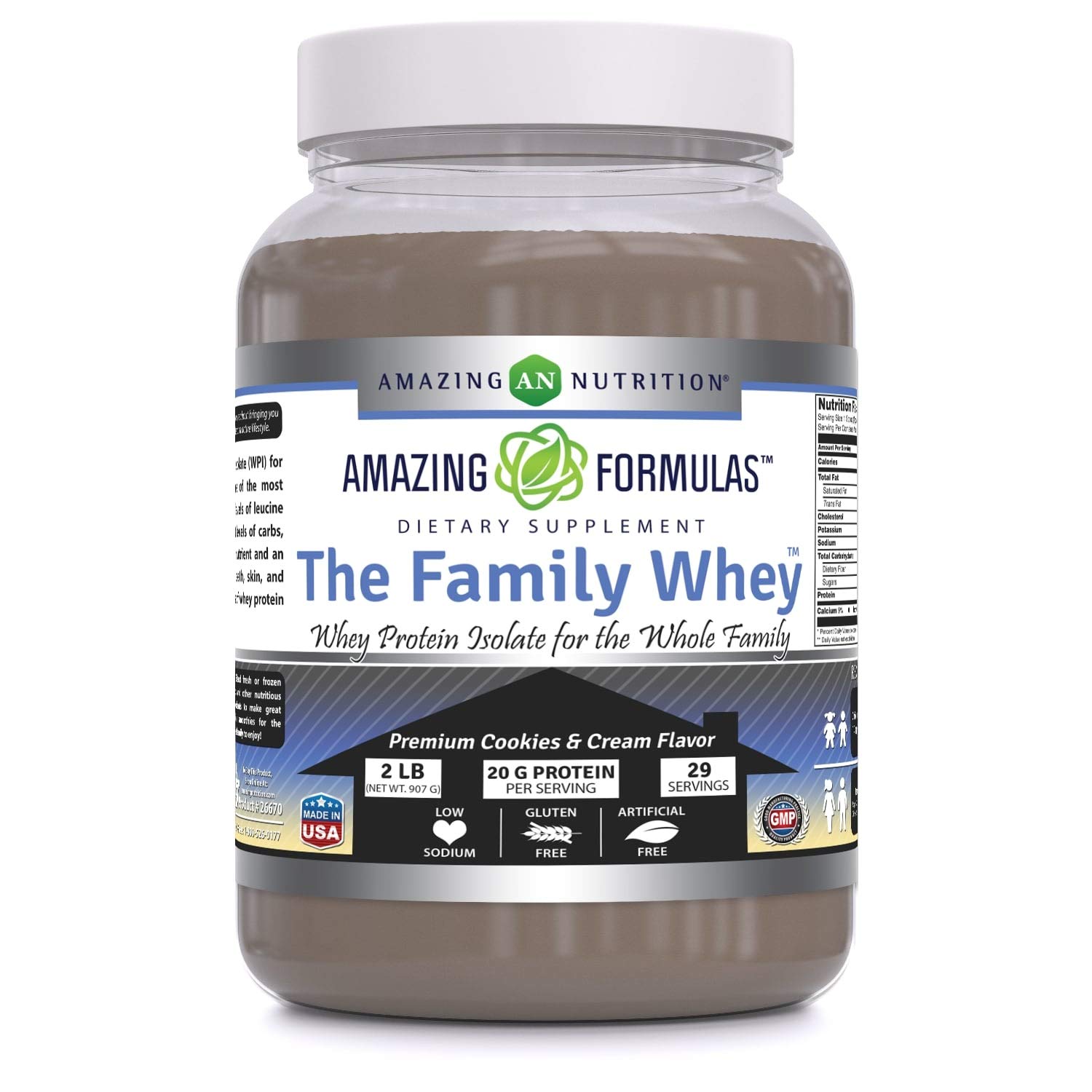 Amazing Formulas The Family Whey Protein (Isolate) Powder for The Whole Family - 2 lbs - Most Complete & Purest Form of Protein - Gluten Free (Cookie & Cream)