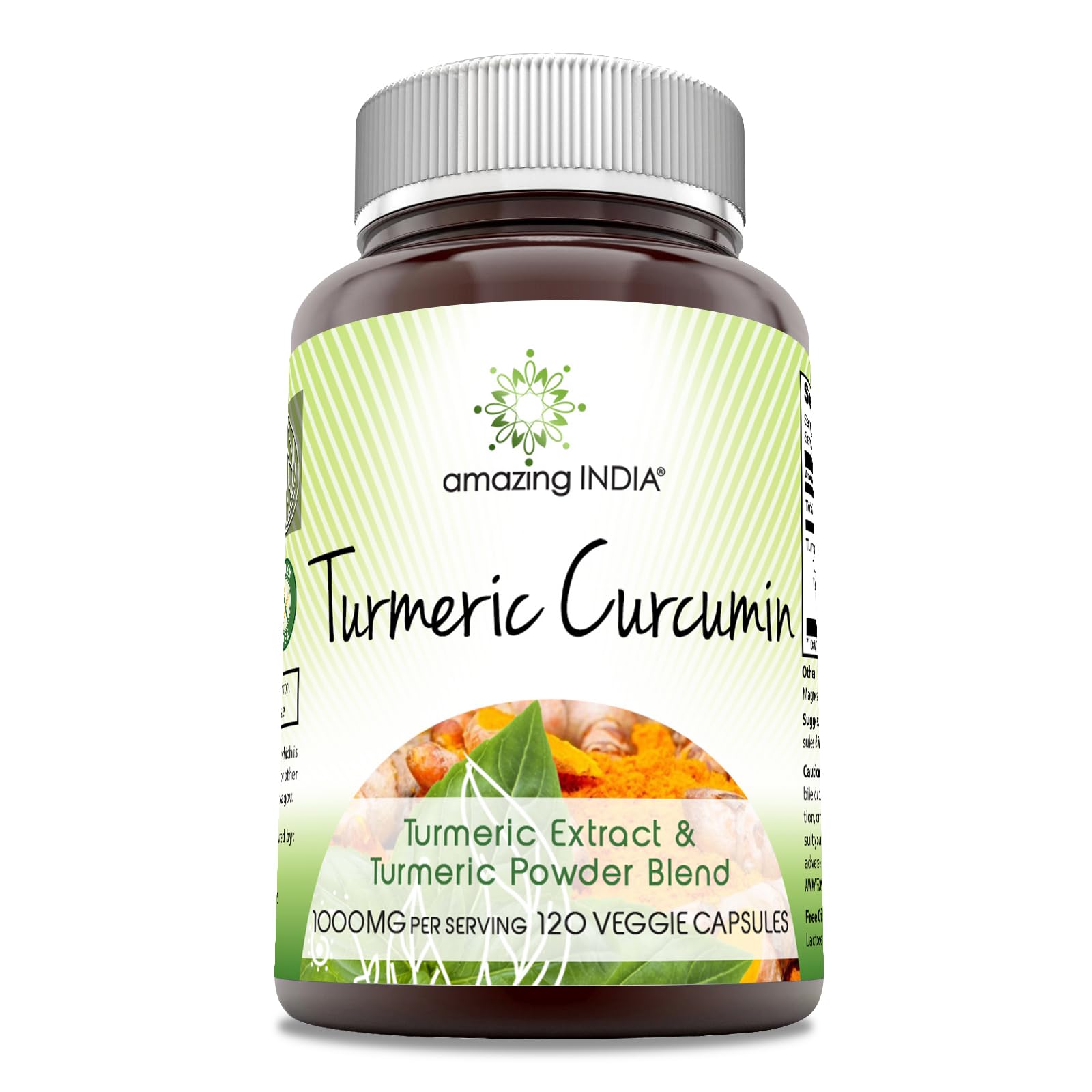 Amazing India Turmeric Curcumin 1000 Mg per Serving | 120 Veggie Capsules Supplement | Blend of Turmeric Powder & Turmeric Extract | Non-GMO | Gluten Free | Made in USA