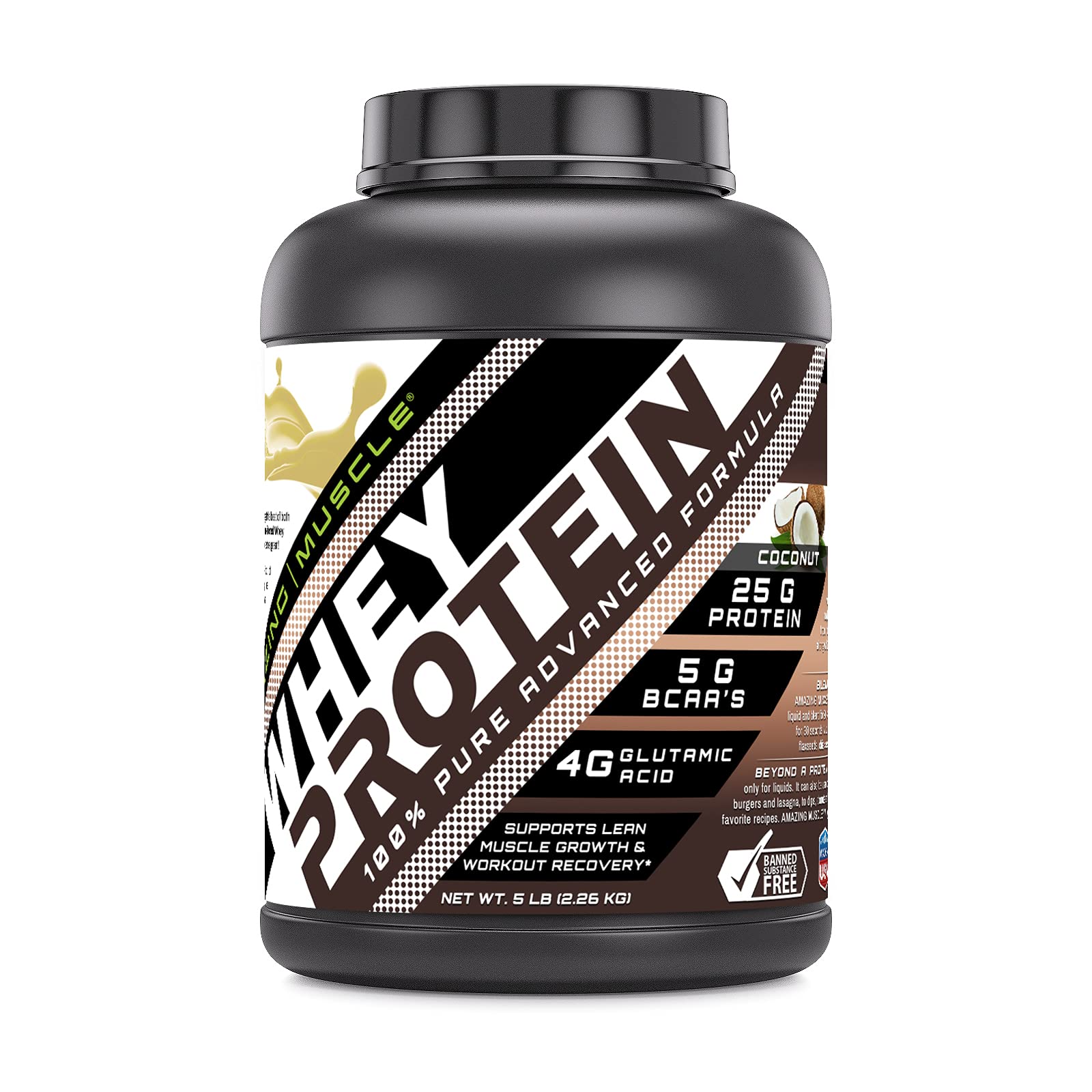 Amazing Muscle 100 Whey Protein Powder Advanced Formula with Whey Protein Isolate as a Primary Ingredient Along with Ultra Filtered Whey Protein Concentrate (Coconut, 5 Lb)