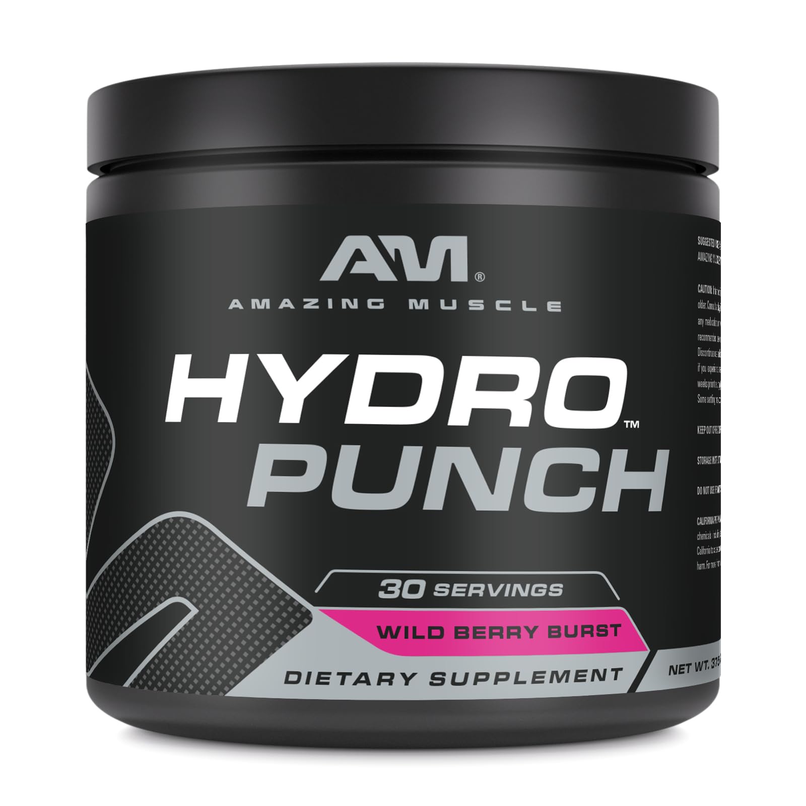 Amazing Muscle Hydro Punch Powder | Hydration + Electrolyte Blend | Contains Vitamin B C Betaine Anhydrous & More | 30 Servings (30 Servings Wild Berry) Wild Berry 13 Ounce (Pack of 1)