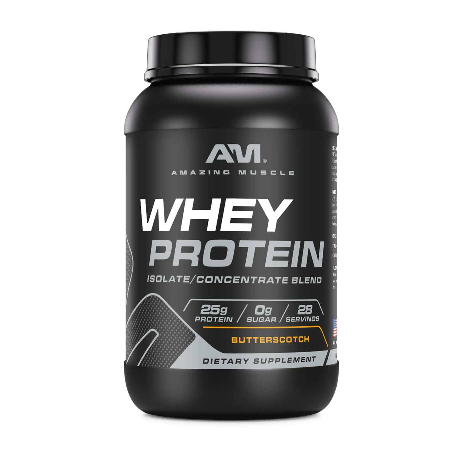 Amazing Muscle Whey Protein Isolate & Concentrate Supplement | 25 G per Serving | 2 LB (0.90 Kg) | Non-GMO | Gluten-Free Butterscotch Flavor