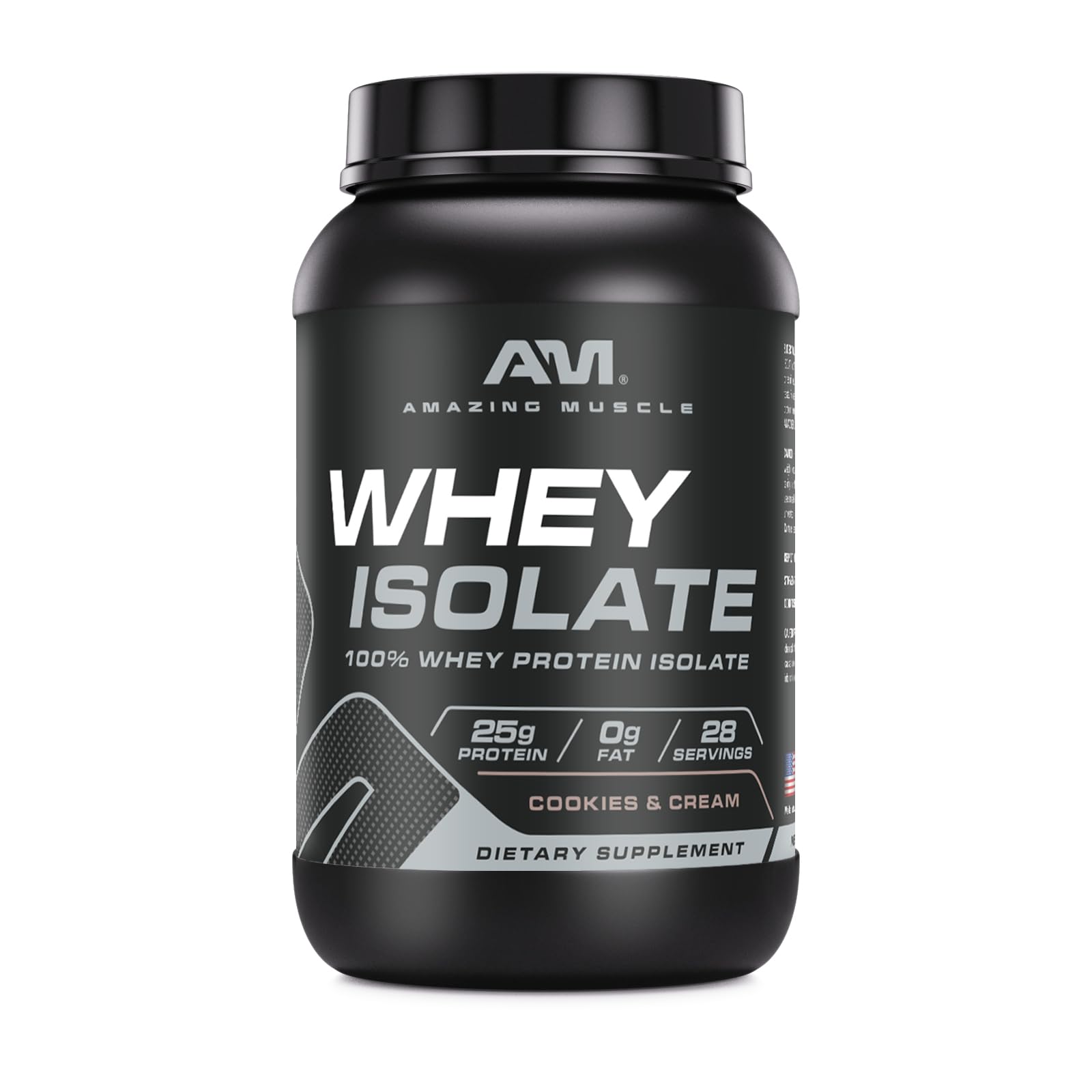 Amazing Muscle Whey Protein Isolate Powder | 25 Grams Protein Per Serving | 100% Whey Isolate | Zero Fat | Made in USA (2 Lb Cookies & Cream)