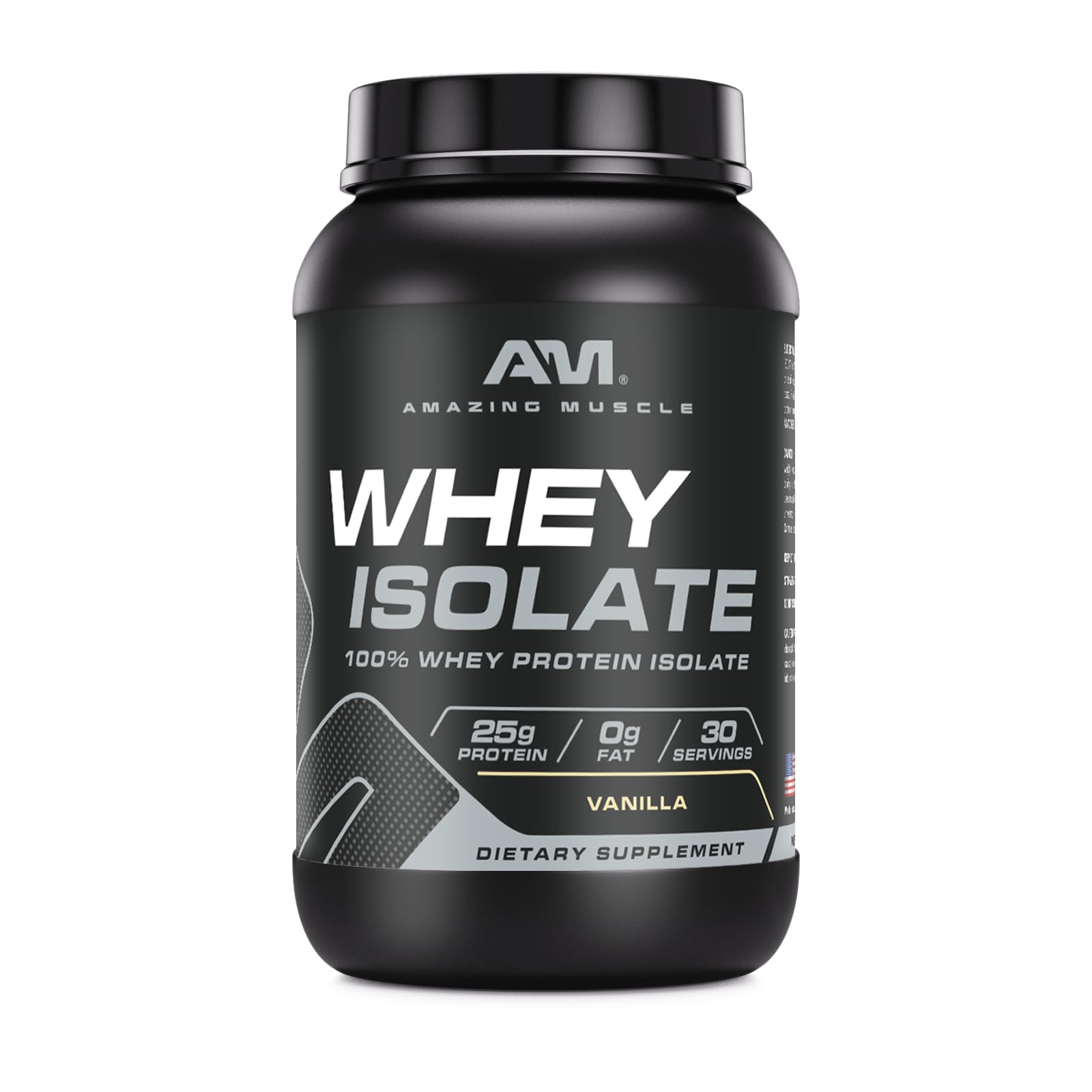 Amazing Muscle Whey Protein Isolate Powder | 25 Grams Protein Per Serving | 100% Whey Isolate | Zero Fat | Made in USA (2 Lb Vanilla)