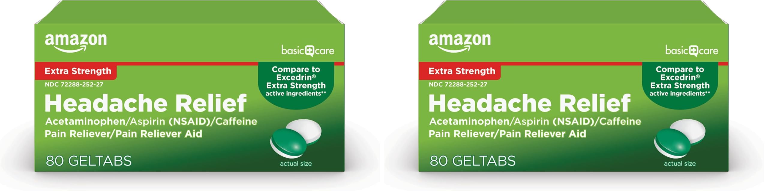 Amazon Basic Care Headache Relief Geltabs, 80 Count (Pack of 2)