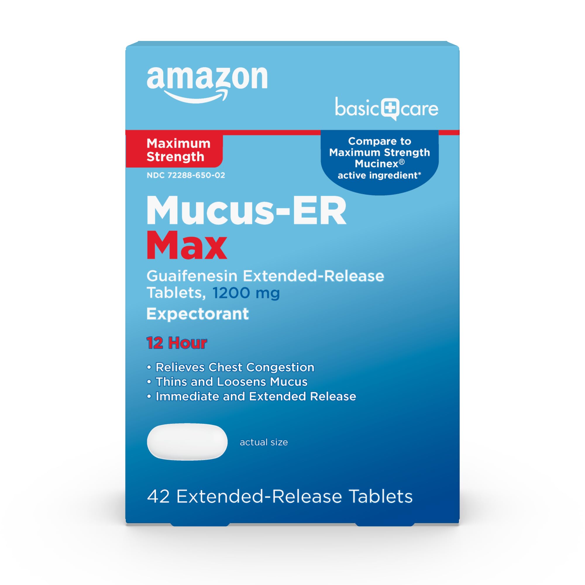 Amazon Basic Care Maximum Strength Chest Congestion and Mucus Relief Guaifenesin Extended-Release Tablets 1200 mg 42 Count 1 Pack